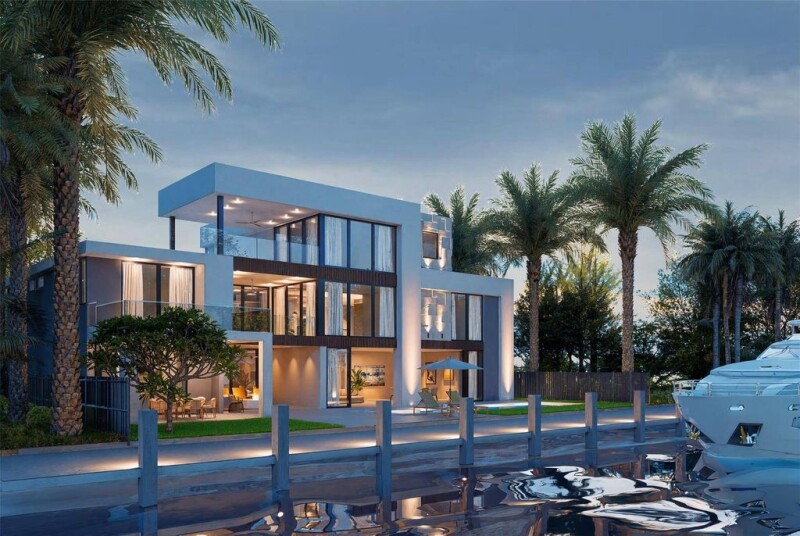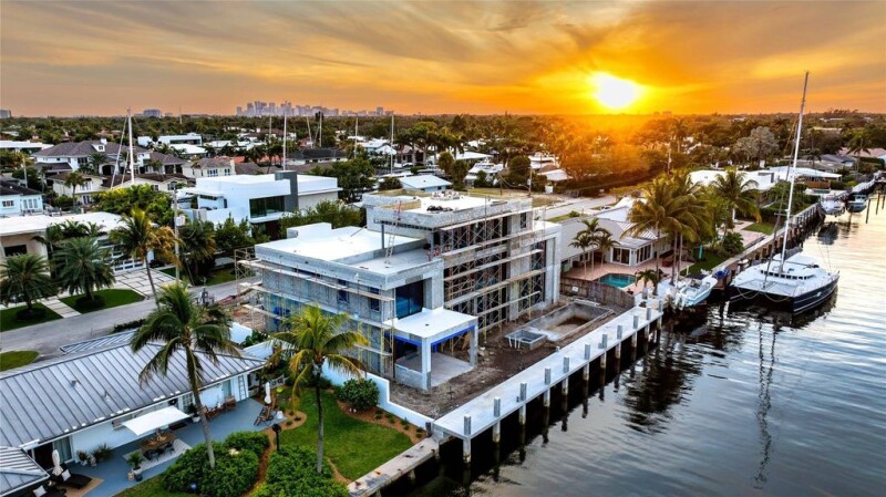 New ultra-modern gated estate on 100’ of waterfront in sought-after Coral Ridge Estates, designed by renowned architect Bruce Celenski and built by Garza Contractors. This stunning new construction spans 8,286+/- total square feet, featuring five bedrooms, seven full baths, and one half-bath. Highlights include a private office, theater room, gourmet chef’s kitchen with premium appliances, elevator, and an expansive third-floor club room with panoramic views. Outdoor amenities offer a resort-style pool with spillover spa, a covered pavilion, and a fully outfitted summer kitchen for effortless entertaining. Ideal for boating enthusiasts, the property includes a brand-new full-service concrete yacht dock, providing easy ocean access with no fixed bridges. Approx. Completion by Winter 2025.