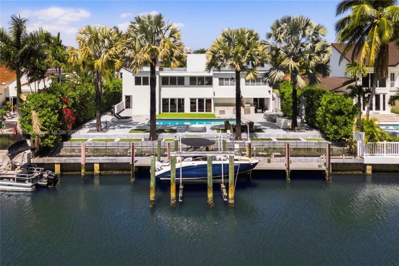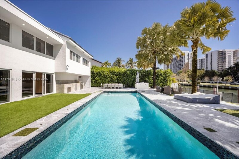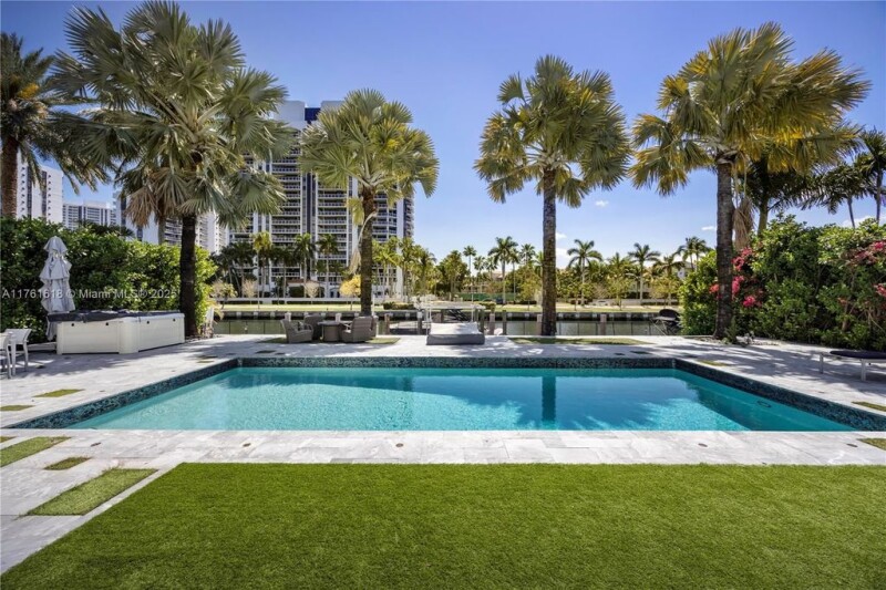 STUNNING COMPLETELY RENOVATED MODERN WATERFRONT HOME IN GATED GOLDEN ISLES. NO HOA FEES.The home greets you with a sleek, modern roundabout driveway and a stunning atrium that floods the space with natural light. The high-ceiling great room seamlessly connects to the newly designed kitchen, all overlooking a sprawling pool deck and a dreamlike backyard with picturesque waterway views.TOP OF THE LINE FINISHES TO INCLUDE MARBLE FLOORS, GOURMET KITCHEN, SUB ZERO APPLIANCES, FLOOR TO CEILING GLASS, 85FT OF WATERFRONT/PRIVATE DOCK/SALINE POOL/THEATRE ROOM/SECURITY SYSTEM/CAMERAS/HOME SURROUND SOUND SYSTEM/IMPACT INSULATED PGT WINDOWS KEEPS HOME COOL & QUIET. HIGH EFFICIENCY LARGE CAPACITY FRONT LOAD W&D/direct ocean access with no fixed bridges, allowing for immediate boating on the waterways.