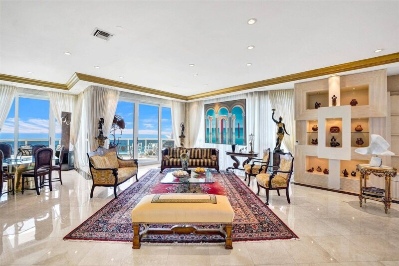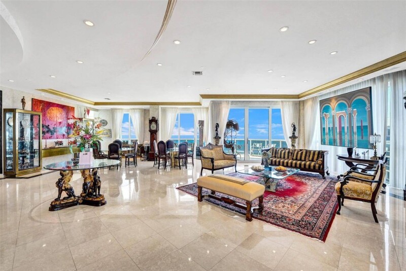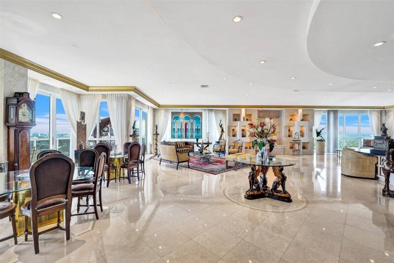 This unbelievable ONE OF A KIND 0ver 7,000 sq foot condo boasts views for miles and a wonderfully unique split floorplan. Direct ocean, Intracoastal, and city views from each of the 6 balconies and the floor to ceiling windows throughout. IMPACT windows and doors. Two separate living areas and kitchens. 5 bedrooms plus office, and 5 full bathrooms, including 2 full bathrooms in the main primary bedroom, make this condo an amazing find. 3 garage parking spaces near the elevator and extra storage unit. Private elevator entrance, controlled temp wine room, 3 separate A/C zones, wet bar with fridge and ice maker, surround sound and 12 foot ceilings! L'Hermitage has incredible amenities with 2 pools, tennis courts, gym, party room, and restaurant w/ 24 hour gated security for the complex.