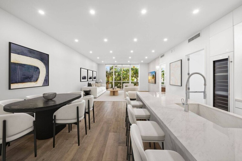 Welcome home to this one-of-a-kind, proficiently designed 1,933 SF corner residence featuring dramatic 12' ceilings and wrap-around glass walls. A lushly landscaped 1,000 SF wrap terrace invites for entertaining or lounging surrounded by greenery. High-end finishes include custom millwork, architectural lighting, automated shades, backlit LED mirrors, 7-ton A/C +more. The open kitchen features a 60" fridge/freezer, tall Miele climate-controlled cava vault and large island. The dreamy principal suite offers a spa bath retreat, dual shower heads w/individual temperature controls & a 71" floating tub. Live in the highly coveted South of Fifth enclave in one of the best lux towers designed by Philippe Starck. Walk to Miami's top culinary scene alongside a mega yacht marina leading to the sand.