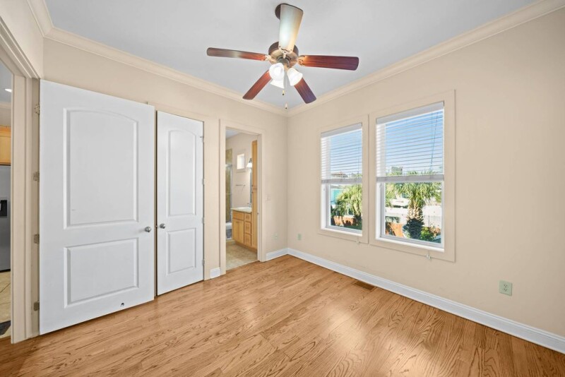 Embrace the allure of coastal living with this charming three-story Florida cottage located in the heart of Panama City Beach, just moments away from the sparkling Gulf of Mexico. Nestled in the desirable Panama Dunes community, this delightful home offers both versatility and style — ideal as a second home or an investment property. This thoughtfully designed cottage features a ground-floor lock-out unit with a separate entrance, kitchenette and full bathroom, providing flexibility for guests or potential rental income. The second floor is dedicated to everyday living, showcasing a spacious kitchen with granite countertops and stainless steel appliances, an inviting living area and a guest bedroom with an adjacent bathroom. The third floor offers a luxurious master suite complete with a Jacuzzi tub, separate shower and a private balcony, as well as an additional guest bedroom and bath. High-end finishes such as tall ceilings, crown molding, and rich hardwood flooring bring elegance throughout, while tile in the kitchen and bathrooms adds both style and functionality. Recently updated balconies on the second and third floors provide perfect spots for relaxation and taking in the surrounding beauty. Outside, enjoy a well-manicured community featuring cobblestone streets, lush landscaping and resort-style amenities including a community pool, hot tub, and BBQ area — ideal for gatherings with friends and family. With its prime location, flexible layout and classic design, this property is a blank canvas awaiting your personal touch. Experience the best of Panama City Beach from this enchanting Panama Dunes cottage — your gateway to coastal living.