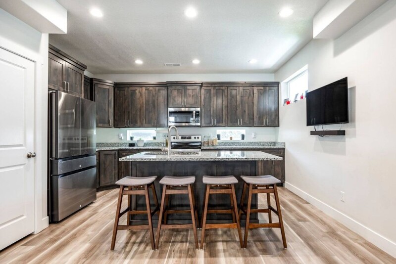 The beautiful open concept main living level features 9 foot ceilings, LVP flooring, painted cabinets, granite countertops, and plenty of natural light. With a large kitchen, dining area, and family room, this space is perfect for entertaining. The row end location adds extra windows and a large balcony with a storage closet. The garage level includes a spacious two car garage and a private bedroom or office with a full bath. Upstairs, you'll find the primary suite with a large en-suite bathroom, double sinks, and separate tub and shower. Two additional guest bedrooms and a stylish guest bathroom complete the top level, along with another balcony and storage closet. Your laundry is also on the top level. Enjoy wide hallways and staircases throughout. Conveniently located near Hill Air Force Base, shopping, restaurants, and just a short drive to the I-15 on-ramp, this townhome has it all. Don't wait to make it yours!.