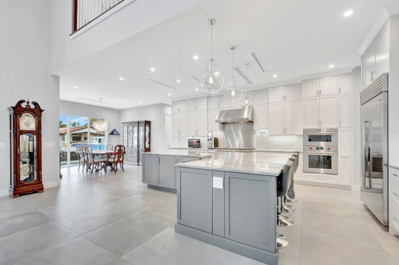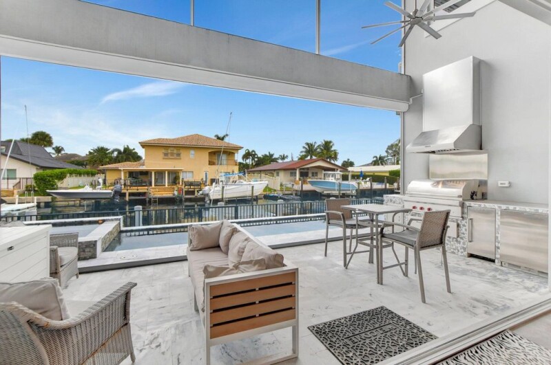 WATERFRONT PARADISE WITH PRIVATE DOCK, 5 CAR GARAGES AND GOURMET CHEF'S KITCHEN.Discover this stunning custom-designed home in the heart of Boca Raton, Florida. Built in 2021, this contemporary traditional masterpiece offers 5 bedrooms, 5.5 bathrooms, and 4,396 sq. ft. of living space, perfectly balancing comfort and sophistication. The open-concept layout boasts abundant natural light, high ceilings, and premium finishes throughout, including top of the line Wolf, Sub Zero and Miele appliances. The gourmet chef's kitchen and summer kitchen are serviced by natural gas.