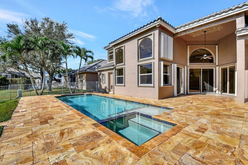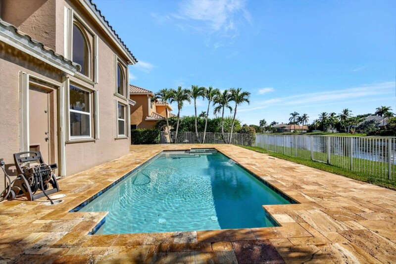 The home is located in the desirable Boca Falls community and is situated on the water. The property has a perimeter fence and a pool with a hot tub. The home has all the modern amenities and was recently upgraded. The home was immaculately maintained and has a new tile roof, an epoxy floor in the garage, accordion shutters all around and attention to detail throughout including crown moldings, upgraded American cabinets and granite countertops in the kitchen, laundry room and pantry, and large porcelain tiles. ? The home has two zone air conditioning ? The main bedroom suite has two large walk-in closets, two upgraded his and hers vanity with lots of storage space, Kohler VibrAcoustic with chromotherapy bath tab, separate walk-in shower with upgraded Kohler fixtures.