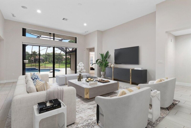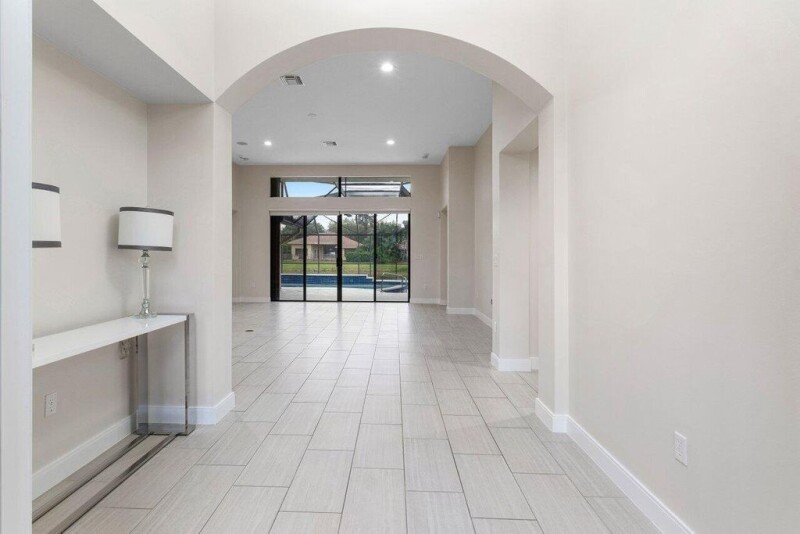 Beautiful Lakefront home in desirable, smaller active community! This Venezia floorplan features 3 bedrooms, 3 baths, heated pool, oversized screened lanai with majestic lake views and cul-de-sac location. The spacious kitchen features 42'' white cabinetry, granite, pantry, extra drawers, under counter lighting and cozy breakfast area. Master suite has glass breakage alarm on master windows, California-style walk-in closet and California style linen closet. Master bath includes oversized frameless shower, lighted vanity and soaking tub. The spacious great room entails, recessed lighting, motion detector and sweeping views of the lanai. Focal point in guest room is wrap around custom wood built ins.