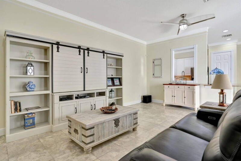 Abacoa living at its finest. This Immaculate, 1 level CBS courtyard home is loaded with upgrades. Enjoy the easement of impact glass and sliders with addition to new accordion shutters, newer roof (2021), and new garage impact door, making this a true Divosta built gem. Enjoy the beautiful porcelain tile throughout, custom crown molding and casings, plantation shutters, nautical style fans, upgraded bathrooms and hardware, upgraded countertops in the kitchen and baths, plenty of storage, 2-car garage, fully fenced yard, & expanded driveway entrance. This home features a beautifully designed layout featuring 3 BR's and 2.5 baths, flowing with an abundance of natural light throughout. The property is great for entertaining with a refreshing outdoor area to entertain friends and loved ones.