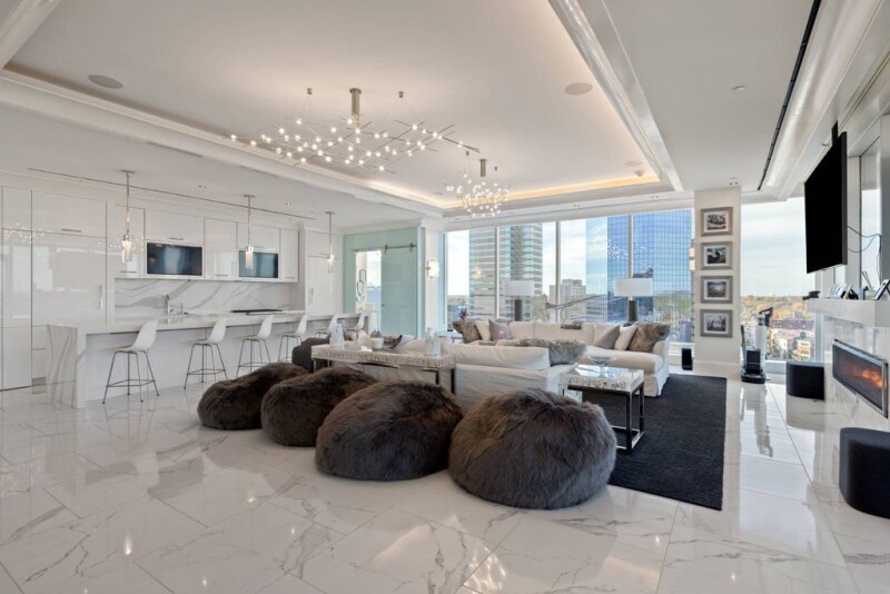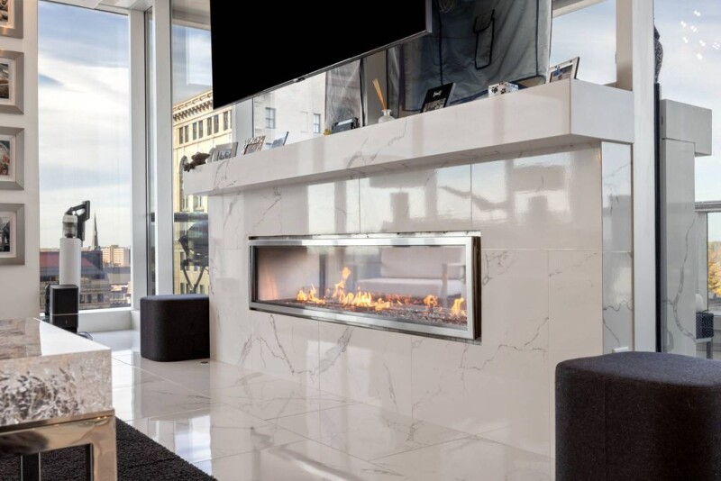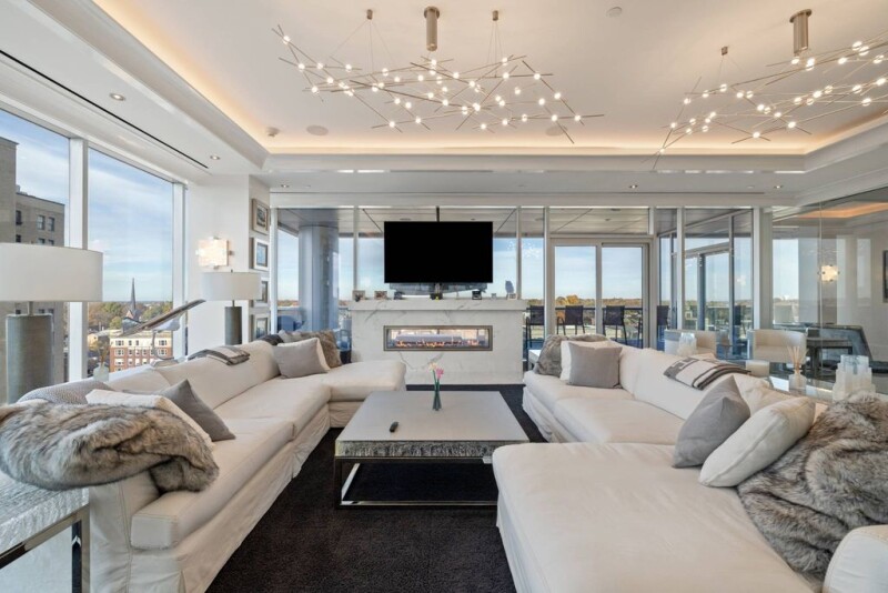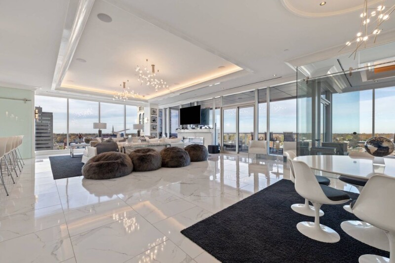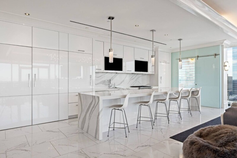 Elevate your living experience with this extraordinary City Center penthouse, offered fully furnished for effortless luxury. The avant-garde chef's kitchen features a stunning 16-foot quartz island with a waterfall edge, complemented by state-of-the-art Subzero and Wolf appliances—perfect for entertaining or indulging your culinary passions. A glass-enclosed flex space offers versatility as a sleek virtual office or a serene second bedroom for guests. The nearby powder room dazzles with cutting-edge design, showcasing a futuristic sloped faucet, a Robern vanity, and smart-tinted glass activated with a touch. The pièce de résistance is Lexington's most exclusive primary suite, seamlessly hidden behind minimalist doors. The spa-inspired primary bathroom is a true marvel, set against a backdrop of glass that can instantly transform into a private retreat with tinted panels and motorized roller shades. Luxuriate in the Thermasseur air tub, unwind in the multi-head programmable steam shower, and organize in style with sublime walk-in closets. The sprawling terrace complete with a two-way fireplace, offers a sophisticated space for outdoor relaxation, entertainment and incredible views.