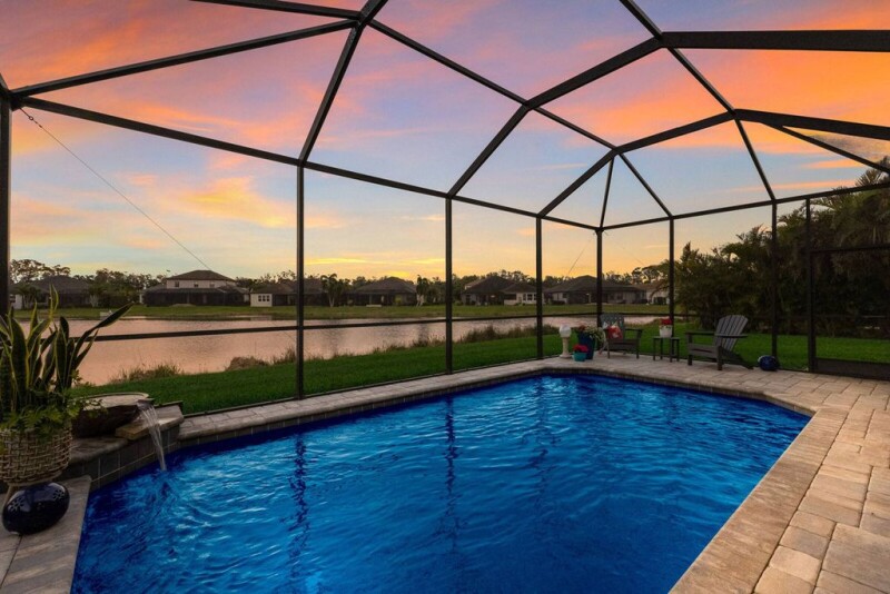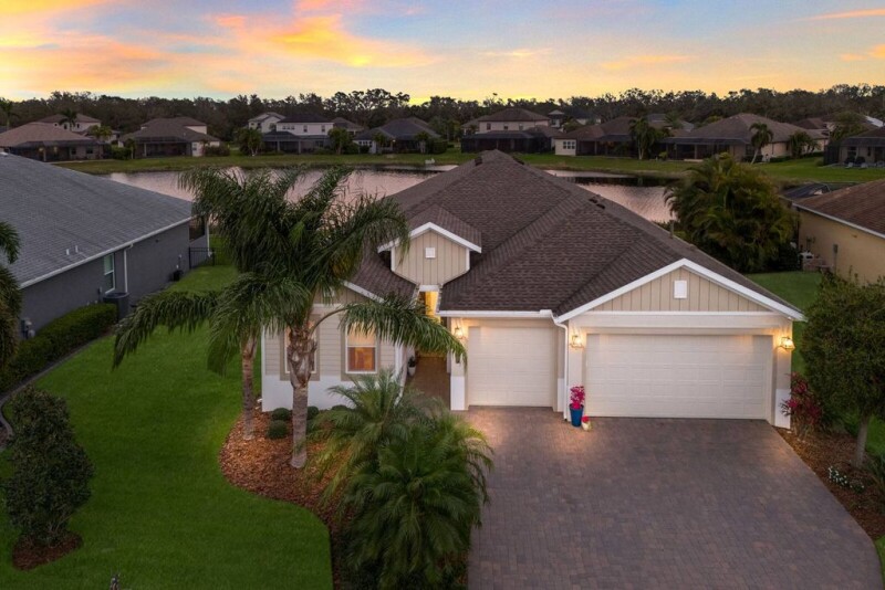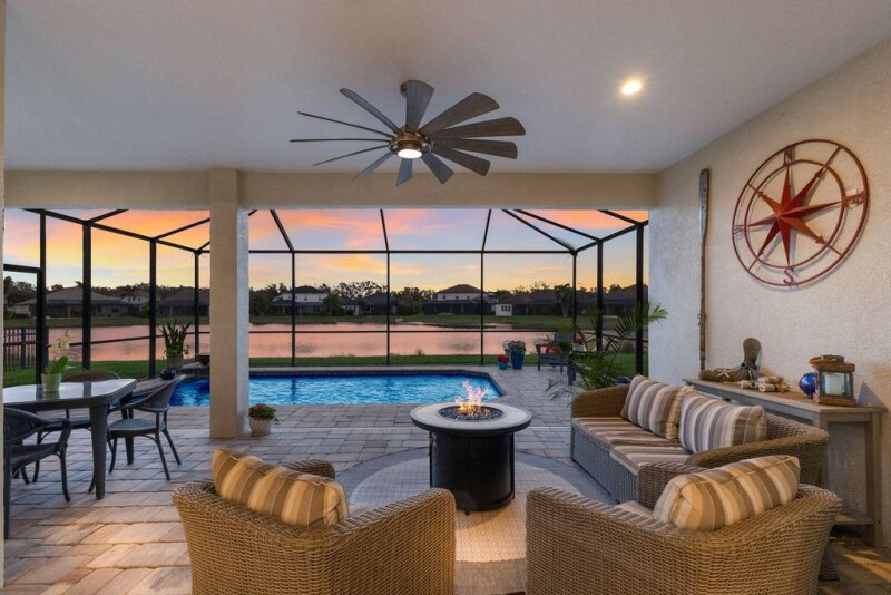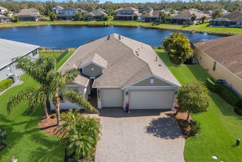 Waterfront Luxury! More than just a home, 352 Chantilly Trail is an entertainer's dream offering unparalleled comfort and coastal style! Stunning Lake Views take center stage in this pristine residence in the gated and vibrant community of Greyhawk Landing. There is so much to love about this impeccably maintained Sam Rodgers-designed home with its classic flair and light-filled living spaces. Boasting 14-foot coffered ceilings and a wall of vanishing sliders, the living area flows seamlessly to the outdoor oasis blending true Florida-style indoor/outdoor living. Bask in the sun or take a dip in your refreshing pool as you relax and unwind on your well-appointed covered lanai. The new outdoor kitchen and dining veranda feature a granite-topped bar and gas barbecue grill, creating an ideal spot for your alfresco gatherings. The inviting kitchen is a culinary haven integrating quartz counters with modern light cabinetry, a stylish backsplash, under-cabinet accent lighting, a generous island, natural gas range, stainless steel appliances and a walk-in pantry. This distinctive three-bedroom, 2.5-bath split-bedroom floor plan with an additional flex space, provides privacy and versatility for those working from home or entertaining guests. Take your pick of spots to enjoy your meals, from casual in the eat-in kitchen, festive in the formal dining room, or quick and cozy at the breakfast bar. Retire to your owner's suite complete with a luxuriously appointed en-suite bath featuring separate vanities with quartz counters, a frameless shower and a generous walk-in closet. Ideally for family or guests, there are two spacious bedrooms each in a separate wing of the home which share an adjacent bath. The additional flex space provides options for a den or home office, ensuring comfort for remote work or study. This special home showcases lovely details such as marble tile, designer lighting and intricate ceilings with architectural accents. The seller has added over $30,000 in upgrades to this special home which include an outdoor kitchen, custom window treatments, designer lighting and fans, intricate ceiling and architectural moldings, grout sealer, rain gutters, hurricane-rated garage door with additional latch and an in-wall pest system. Come discover Greyhawk Landing a premier, gated community near Lakewood Ranch, unrivaled in scenic beauty and graced with a wealth of resort-style amenities. Highlights include two community centers featuring lagoon-style pools, spas, and a waterslide. A clubhouse with a state-of-the-art fitness center and sports courts. Playgrounds, sports fields and fishing lakes offer endless recreation, while one of the most cherished features of Greyhawk Landing is the expansive network of scenic trails for residents to immerse themselves in the community's breathtaking beauty. Just minutes from Lakewood Ranch's top-rated schools, upscale dining, shopping, golf courses and pristine Gulf Coast beaches, this home embodies the essence of Florida's coastal lifestyle. You'll appreciate the convenient access to Lakewood Ranch, Interstate 75, local airports, and Sarasota's downtown arts and cultural districts. Additionally, your home is just minutes from the powder white sands and blue waters of our award-winning gulf beaches. Are you ready to live in paradise≠ This pristine home could be yours today. Call us for your private showing.