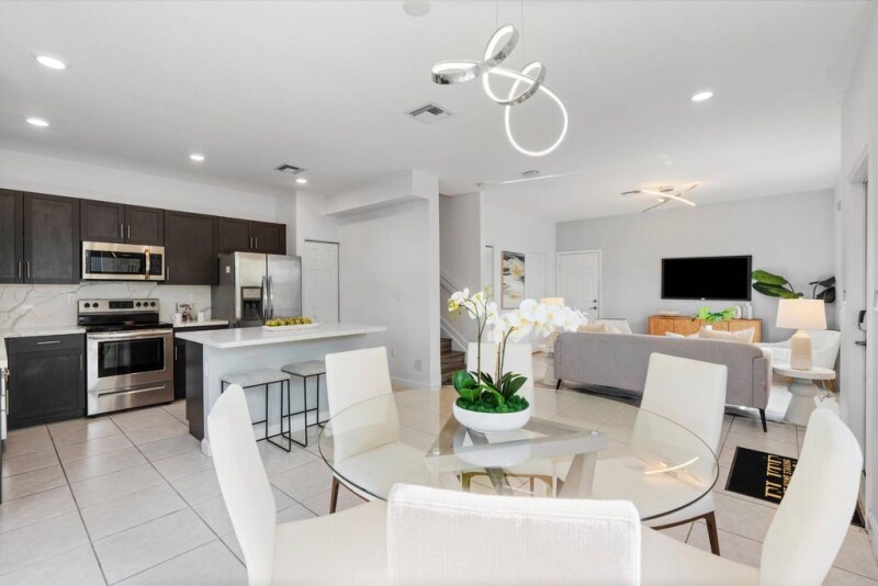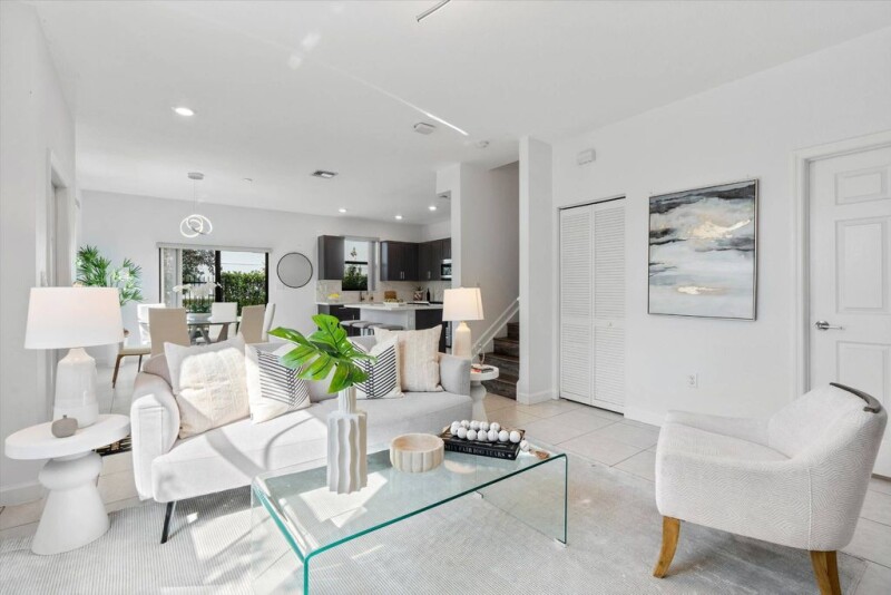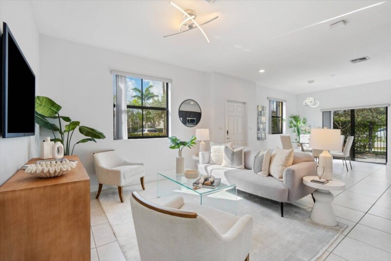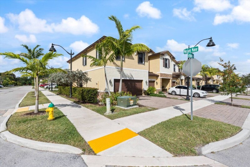 Welcome to this stunning 3-bedroom, 2.5-bathroom corner townhouse with a versatile den (convertible to a 4th bedroom). Features include wood and porcelain floors throughout, quartz countertops, custom closet shelving, blinds on all windows, and a spacious 2-car garage. Hurricane-ready with 9 aluminum protective shutters (resistant up to 300 mph winds). Upgrades include a mosaic garage pavement, back patio pavement, new washer/dryer, Mercedes EV charger, new garage opener, and a Nest thermostat. Centrally located across from the community pool and postal office, near shopping, Hard Rock, and highways.