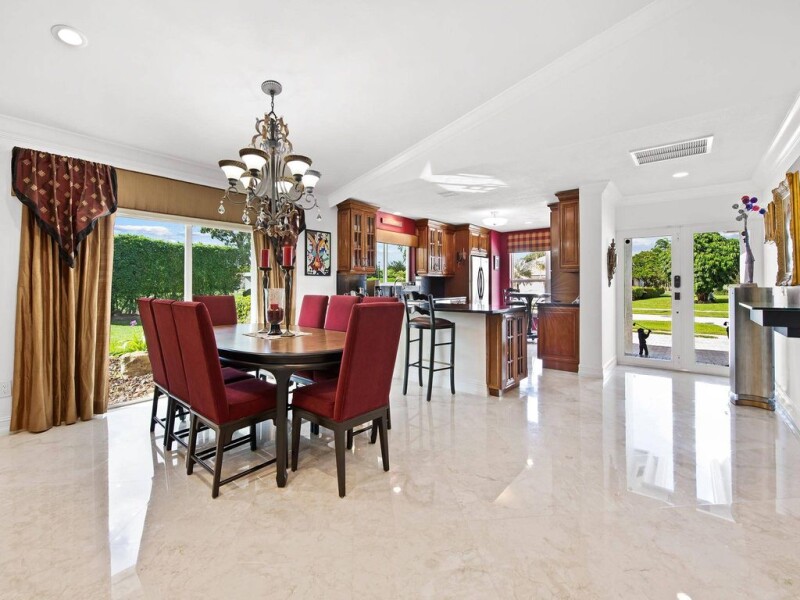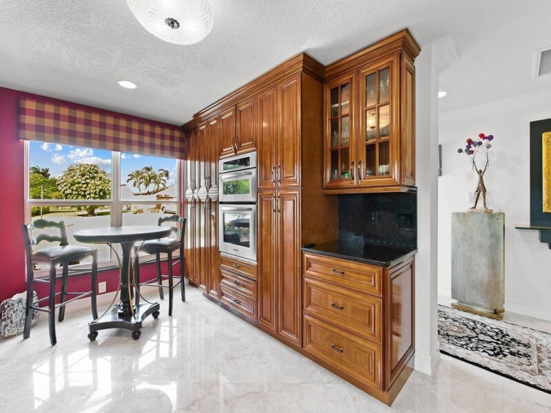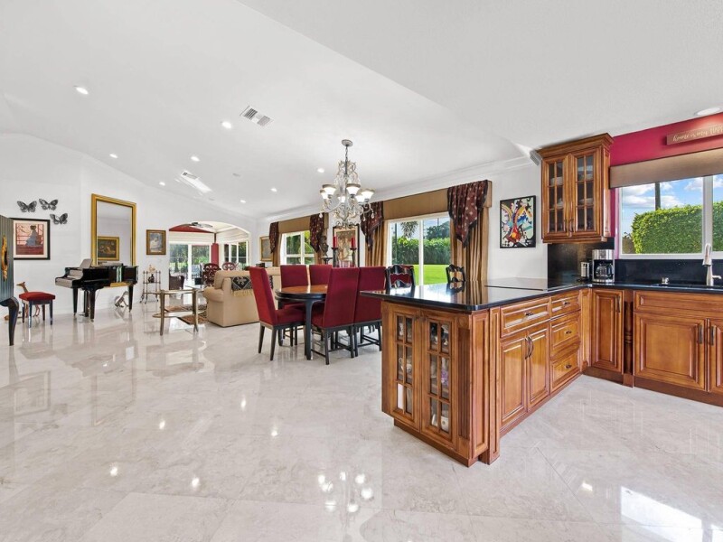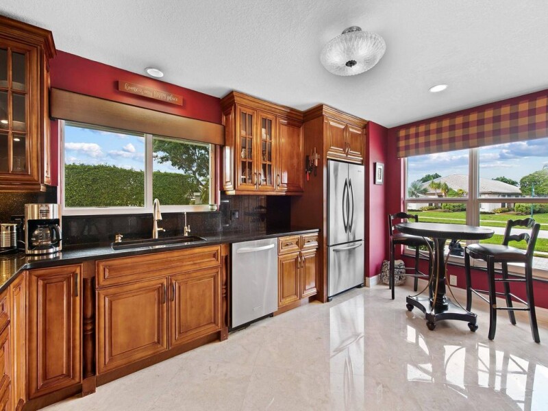 Boca Woods Country Club renovated home features full house generator, impact windows and doors, marble floors throughout, two car plus golf cart garage. Exceptional three bedroom, three full baths plus Den home offers a perfect blend of elegance & tranquility. Open concept Living, dining, and kitchen areas blend effortlessly, ideal for entertaining and enjoying family gatherings. Step outside to an oversized patio and relax in the pool overlooking a spectacular view of the new Rees Jones designed Woods Course. BWCC offers two 18 hole championship golf courses, pickleball, tennis, fine and casual dining, fitness center, spa, game room and much more. Mandatory membership $120,000. See attached yearly fees & dues.