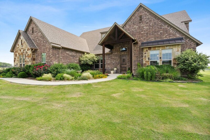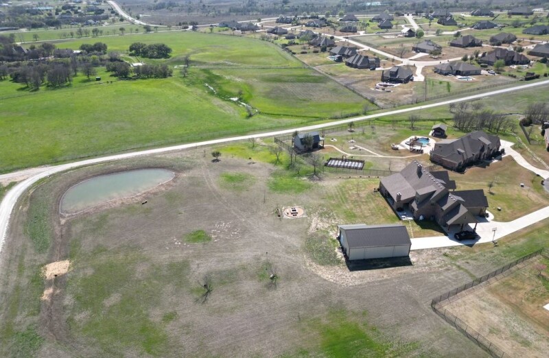 Nestled on the largest lot in the coveted Sanctuary Oaks neighborhood, this exquisite home combines luxury and comfort with over 3.4 +/- picturesque acres in Aledo ISD. Step inside to discover a spacious family room featuring soaring ceilings with rustic wood beams, gleaming hardwood floors, a cozy gas fireplace, and custom built-ins. Expansive windows flood the space with natural light, creating an inviting atmosphere for family gatherings and entertaining your guests. The gourmet kitchen offers striking granite countertops, a large island, ample storage, stainless-steel appliances, and seamlessly flows into the adjoining breakfast area. The primary suite offers a private retreat with direct access to the backyard. The spa-like en-suite bath is a true oasis, featuring a large walk-in shower, jetted tub, elegant granite countertops, and a massive walk-in closet. The second bedroom downstairs comes with its own en-suite bath for added convenience and privacy. Upstairs, you'll find two additional bedrooms and a full bath. The converted loft space has been transformed into a fourth bedroom, and attic space transformed into a closet-storage area. Outside, the expansive covered patio is perfect for year-round entertaining. With a cozy fireplace and plenty of room for lounging, it's ideal for relaxing or hosting guests in any season. For those who enjoy hobbies or need extra workspace, the custom-built 30x50 workshop with electricity provides endless possibilities. Adding to the allure of this extraordinary property you have a large private pond offering a serene setting and endless opportunities for outdoor recreation. This remarkable property offers the perfect blend of luxurious living, functional design, and natural beauty—truly a one-of-a-kind opportunity!.
