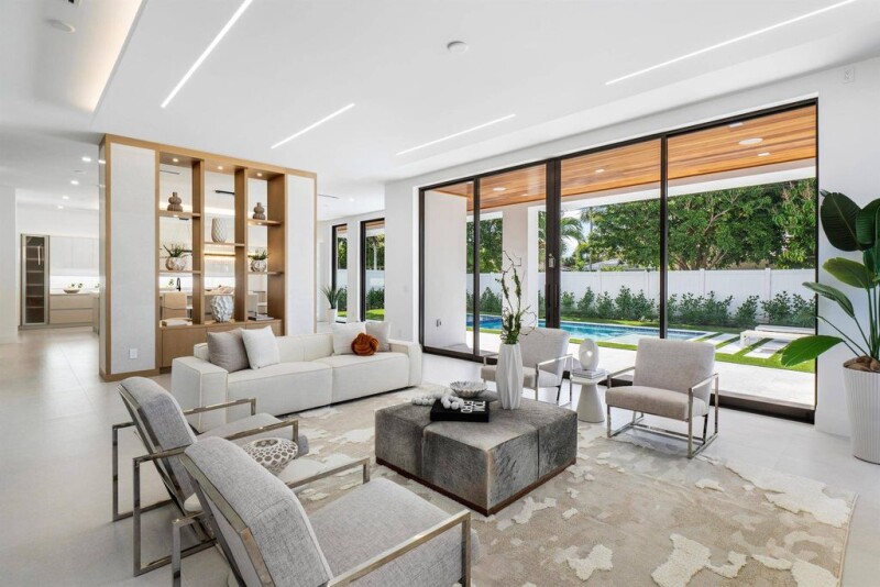 Welcome to 812 Malaga, an architectural masterpiece in Boca Raton's coveted seaside enclave of Spanish River Land. Just 200+/- yards from private ocean beach access, this brand-new contemporary estate--crafted by the renowned Core 4 Homes--is now complete and ready for its new owner to enjoy.Spanning 4,434 square feet of sophisticated living space, this exquisite new construction boasts five spacious bedrooms, including a ground-level suite, and five impeccably designed bathrooms, with four upstairs bedrooms featuring en-suite baths.A dramatic entrance unfolds as you approach, with floating steps, a lushly landscaped yard, and a serene water feature setting the stage for the modern elegance within. (Please note: The door in the photograph is temporary and will be replaced with a.