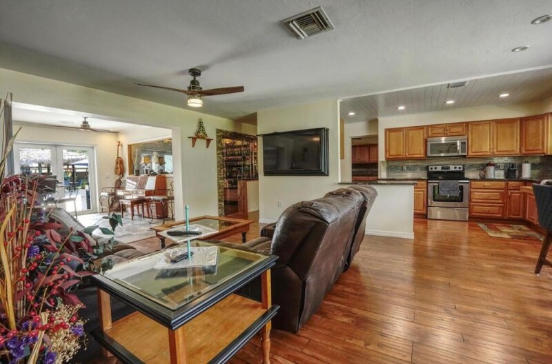Lake Osborne, waterfront views! 5-bedroom, 3.5 bath home! Sellers currently have a ''Jack Daniels'' room which could be used for cigars, wine, collections of all sorts! Butler pantry! Even a possibility of a mother-in-laws quarters, nanny room, guests. Exit through the beautiful back French doors and walk into the most beautiful ''resort style oasis''. Pool, waterfalls, outdoor shower, outdoor speakers, areas for growing orchards, grape vines and all your homegrown vegetables. Continue on to find the most impressive tiki bar with a fully operational bar with grills and refrigerators! All TV's are staying with this house. Entrances to the back yard on both sides.