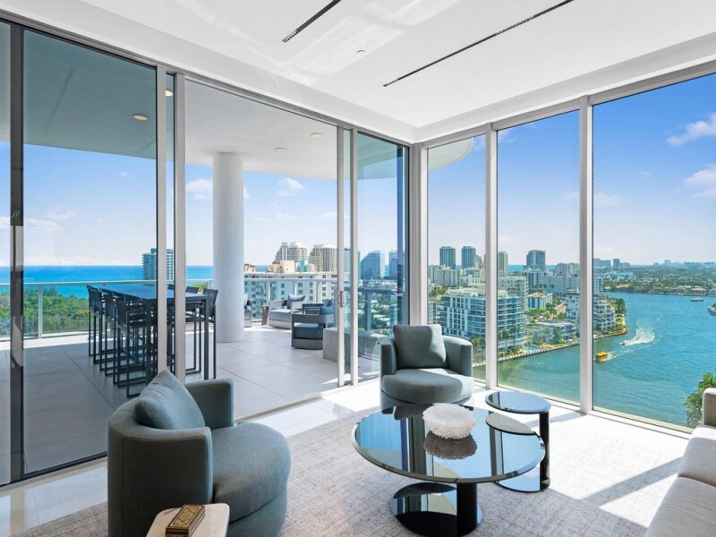 Inspired by a new level of luxury, this unprecedented penthouse commences with breathtaking views over the ocean, Intracoastal waterway & city skyline through floor to ceiling walls of glass that invite an abundance of natural light over the open floor plan & multiple living spaces. Striking architectural details, curated finishes & state-of-the-art lighting provide a sophisticated lifestyle. Expansive terraces with a summer kitchen extend interior living & entertainment areas into the sky. The epicurean kitchen with an abundance of cabinets & upgraded appliances will inspire those who entertain & cook. The primary suite boasts the ultimate retreat: a custom walk-in closet & spa inspired bathrm. Control 4 technology, turnkey/fully furnished, 3parking spaces & add'l storage. Sq Ft from BCPA.