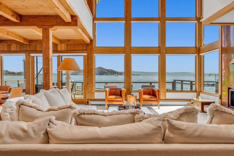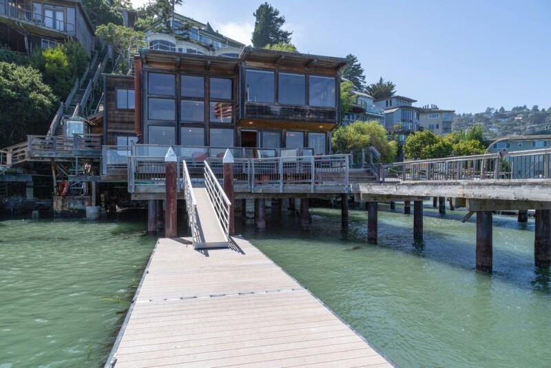 Located in a coveted enclave, this extraordinary waterfront home presents a rare opportunity to own a truly unique property. As one of only four single-family homes in Sausalito built directly over the water, it is also one of the first private residences just north of the Golden Gate Bridge. This remarkable oasis provides breathtaking panoramic views of San Francisco, the shimmering waters of both San Francisco and Richardson Bays, and the picturesque hills and waterfront of Sausalito. A few steps down from the entry landing, the main level living room boasts double-height ceilings, an impressive 20-foot copper-clad fireplace, and walls of glass designed to capture the views from all sides. The open living room leads to a beautiful chefs kitchen, dining room, and the outdoors – the perfect backdrop for entertaining. Old Glory flies prominently from the end of the private pier and is a landmark for many boaters. The massive deck is ideal for dining, lounging, or just enjoying the lapping waves and the sounds of sea birds. Walk down the private gangway to a new oversized floating dock which provides direct access to the water. The well-appointed open kitchen with breakfast bar features stone counters, ample cabinets, and stainless steel appliances. Behind the kitchen is a generous pantry with a wine fridge and laundry. Also on this level are a powder room, coat closet, and storage. On the upper level, there is an open office area plus three bedrooms and two bathrooms, including the captivating primary suite. The primary bathroom features a double-vanity with clerestory windows, separate toilet, and shower with water views. The primary bedroom enjoys unparalleled Bay views, including Angel Island and the San Francisco skyline, as well as pelicans flying by. A new hillevator offers private access and a unique experience as you are transported from the parking deck down to another world. This home is not only a serene waterfront escape but also a convenient gateway to the vibrant heart of San Francisco, just a short distance away. Truly a location like no other, offering some of the most magnificent views found anywhere in the world, this opportunity could be even more spectacular with some creative vision.