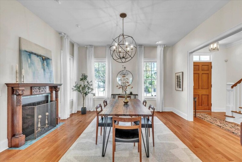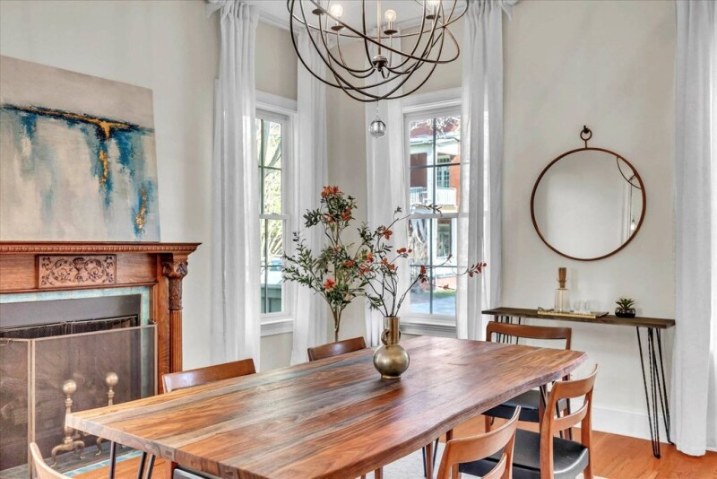 A rare find in Savannah’s Historic District, this home offers the charm of the past with the convenience of modern living. Situated on two coveted city lots , this 2014-built residence blends seamlessly with its historic surroundings while offering an expansive private backyard and courtyard retreat. The home and carriage house include active non-owner occupied STVR permits. Step inside to 10-foot ceilings, hardwood floors, and exquisite natural light that pours through every window. The thoughtfully designed floor plan includes two ensuite bedrooms on the second floor along with a laundry closet and one ensuite bedroom on the top floor with a seating area and two closets. The sleek antique pocket doors create a seamless transition from the dining and living spaces. The kitchen is a showstopper, featuring custom beaded inset cabinetry and a spacious center island perfect for gathering. At the heart of the home, history meets craftsmanship with an antique mahogany front door and an antique fireplace surround, both carefully sourced and shipped to Savannah. The generous back porch invites you to unwind and take in the peaceful surroundings. Adding to the home’s appeal, the carriage house offers two parking spaces and an unfinished upstairs apartment with plans in place to complete—an incredible opportunity for guest quarters or additional living space. An off-street parking space provides further convenience. Located just three blocks from Forsyth Park , this exceptional property offers privacy, space and a prime spot in Savannah’s most sought-after district - moments from the city's best dining, shopping, and cultural attractions.