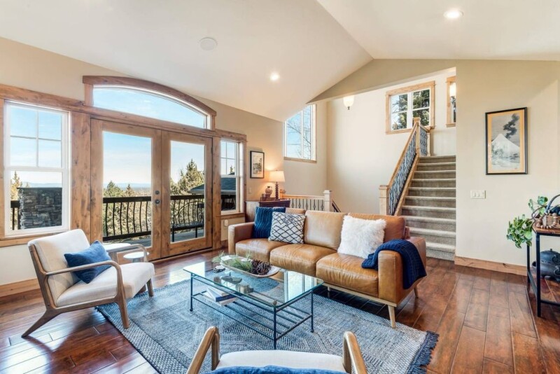 Discover the perfect blend of comfort and custom finishes with this stunning 2006-built home in the vibrant Awbrey Village community of NW Bend. The expansive 4,221 square foot home boasts three distinct living areas, each adorned with panoramic views and offering plenty of options for relaxation, entertaining, or guests. Main-level living is highlighted by a well appointed kitchen, large dining room, lovely gas fireplace, generous primary suite and a wrap around deck to take in the outdoors. A spacious three-car garage is also on the main level with no stairs entering into the home, offering plenty of room for all your outdoor adventure gear. Upstairs, you'll find three additional bedrooms, two full bathrooms and a loft room with sweeping mountain views. The lower level has a home gym, home office, full bath, additional family room, two large storage rooms and a stone patio. The driveway's snow-melt system makes for easy living in the winter months. This is a must see property!.