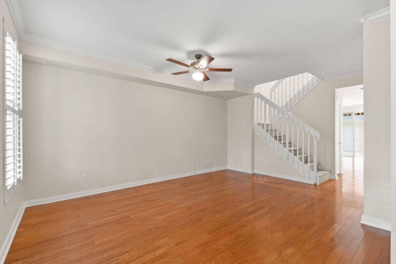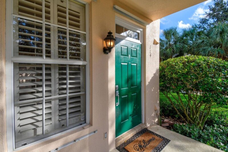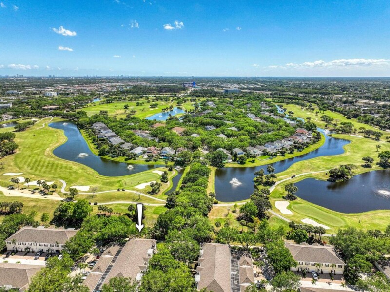 RARE END-UNIT townhome in Charleston Court offering additional windows and unobstructed golf course and lake views, located on the 8th tee. A spacious 3-bedroom layout, a large screed in patio and access to a community pool - all within walking distance to top local amenities. The open plan main level features wood floors and large windows. The high-end kitchen is equipped with newer KitchenAid appliances. The primary suite is a spacious and serene retreat, the guest bedrooms are equipped with built-in closets. Enjoy the convenience of a central vacuum system and fresh paint throughout. 2022 roof. Charleston Court is a family-friendly community with green spaces and a pretty community pool. It's perfect for outdoor lovers, with easy access to parks, Abacoa Golf Club, R.