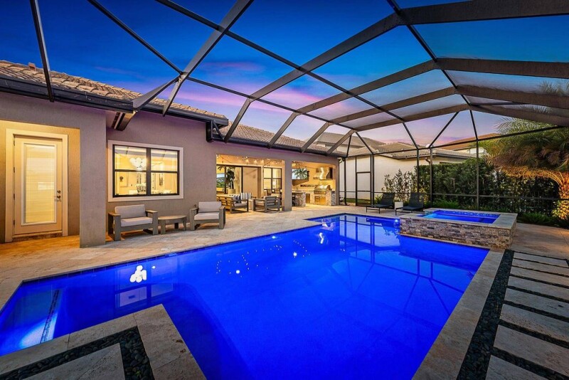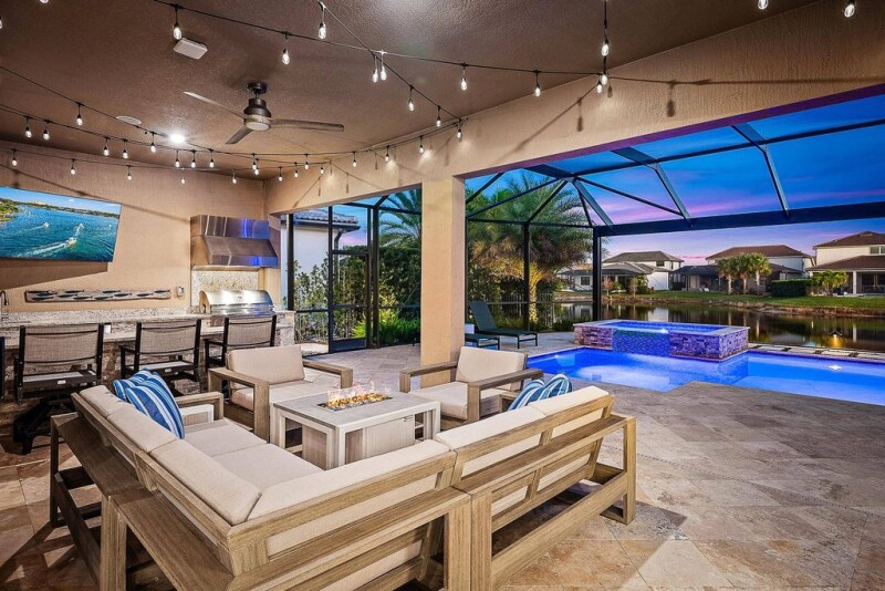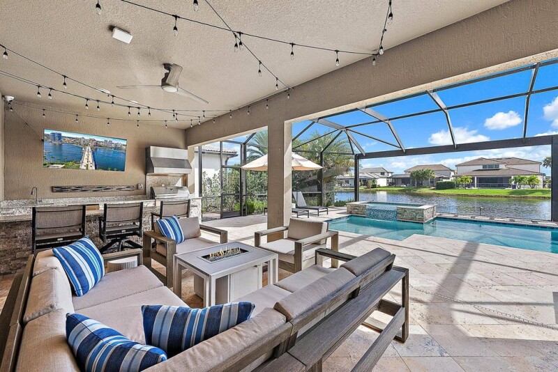 Presenting a stunning five-bedroom plus den smart home nestled on one of the most coveted lots in Sonoma Isles, Jupiter. Surrounded by serene water views & natural preserves, this expansive Clubview model stands as the largest one-level floor plan in the community, meticulously designed & filled with luxurious upgrades. The custom saltwater pool, framed by elegant travertine decking, offers a private oasis, complemented by a fully equipped outdoor kitchen--perfect for alfresco dining & entertaining. Inside, the chef's kitchen dazzles with premium KitchenAid appliances, double ovens, custom cabinetry, & a marble backsplash--a dream for any culinary enthusiast. Seamlessly blending indoor & outdoor living, the home features a zero-corner sliding door that opens to an entertainer's paradise.