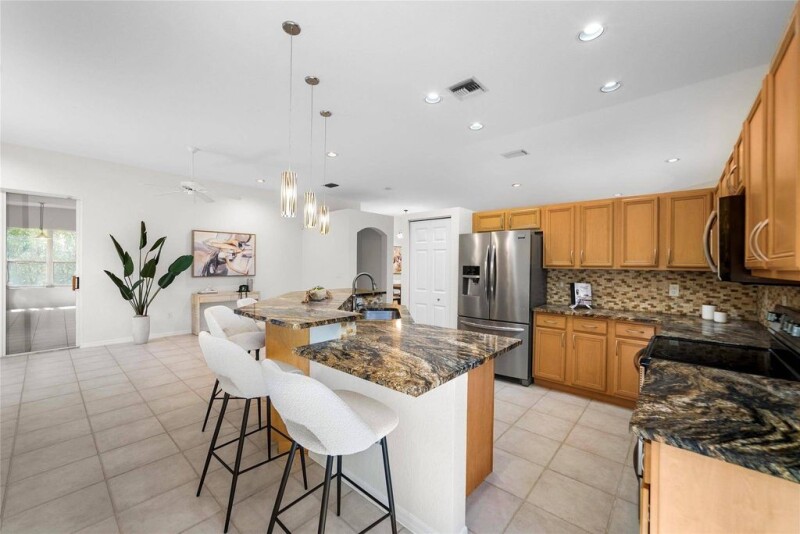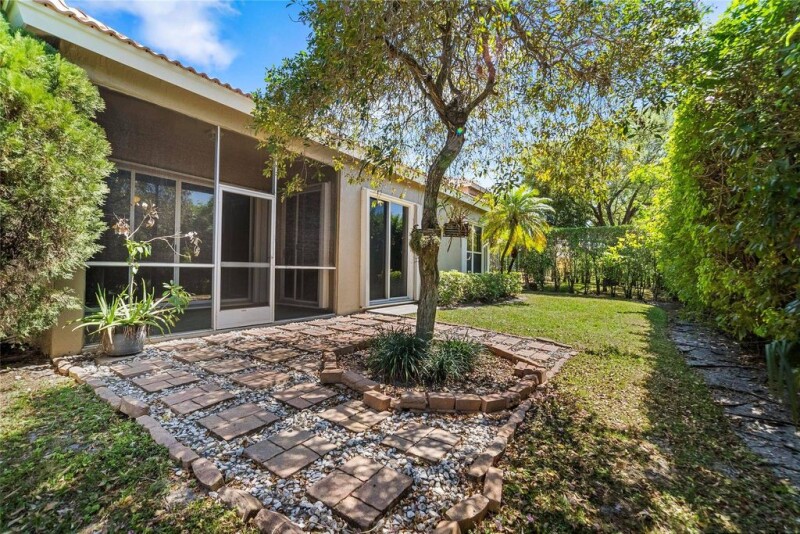 Welcome to this beautiful 4-bed/2-bath home, located in a desirable gated community in The Lakes of Parkland. Step outside to the screened patio, where you can relax and enjoy views of your private, fenced garden An ideal space for outdoor living. Inside, the updated kitchen features granite countertops, real wood cabinetry, and stainless steel appliances, and a wine fridge perfect for the home chef. Each bedroom boasts high-end laminate flooring. Feel secure with complete full hurricane shutters. The HOA covers all landscaping, providing a worry-free lifestyle. Enjoy the community pool and take comfort in knowing this home is zoned for Parkland's A-rated schools, making it a perfect choice for families. Don’t miss the opportunity to make this your dream home!.