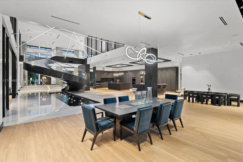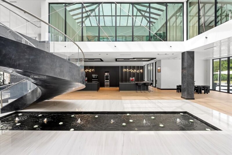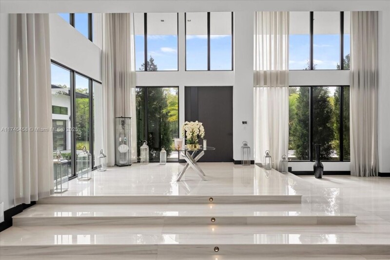 Rare luxury estate with 2 acres of land in the heart of Pinecrest! Newly built in 2022, with 20,182 sq ft. of open plan living, a refined modern residence featuring double height ceiling central atrium with spectacular circular staircase, 10 beds with large en-suite bathrooms and spacious closets, 4-car garage, elevator, large master suite with en-suite living area overlooking atrium with 725 sq foot skylight! Interior and exterior water features, custom Italian kitchen and closet millwork, large marble slabs line the foyer, and floor to ceiling windows throughout. Expansive grounds surround the pool deck, jacuzzi, cold plunge, a detached 1000 sq foot gym, and tennis court. Very large backyard with room for a padel or pickle ball court, basketball court, soccer field or a putting green!.