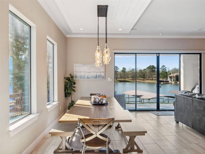 Take in the incredible lake views from 2 levels. Pristine & beautiful, this newer luxury townhome sits on a wide cove on Lake Conroe with deep water & a covered boat slip for easy lake access. Amazing corner unit feels like a traditional home with its private fenced yard & driveway. Conveys fully furnished to make it your immediate "Home Away From Home", or your every day home away from it all. French-style brick appeal with modern luxury finishes including linear tile floors, lighted stairs, luxury fixtures & gas cooking. A small Media area at the secondary bedrooms accommodates gaming/movies. Primary Suite offers a copper soaking tub, a large closet & bedside Terrace to wake up to water & sky. The Covered Patio has a fireplace for lakeside relaxation. This 3 unit building is uniquely situated among high-end waterfront homes. The garage is utilized as a game room for extra entertainment off the water. Vacation rentals are allowed, making it an ideal investment. 40 minutes to IAH.