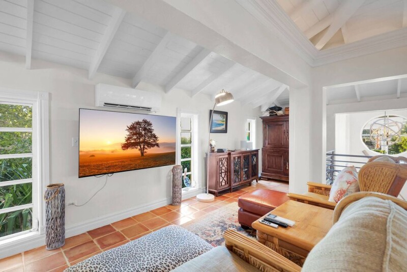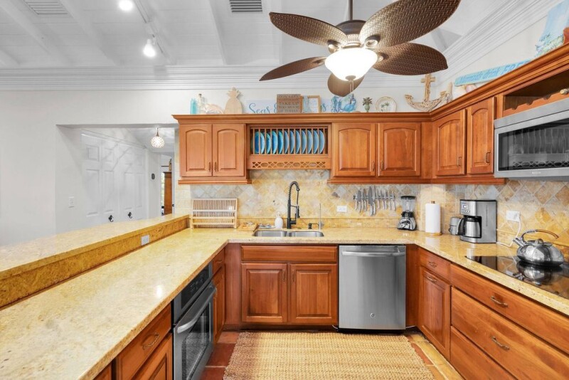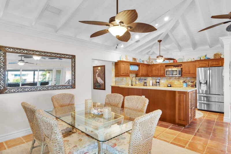 Discover the tropical privacy on nearly half an acre of this Caribbean-style updated home, which offers stunning open water views of Largo Sound from one of the area's prime locations. The property features 120 feet of concrete dockage with electric and water. The basin has convenient stairs to launch your water toys. The home offers two bedrooms and 3 baths upstairs with an open concept living area with Saltillo tiles, granite countertop, stainless steel appliances, vaulted white tongue and groove ceilings, and impact sliding glass doors in the living room on 2 walls accentuating the open water views. Interior stairs lead to another bedroom, full bath, and living room downstairs. Enjoy the professionally landscaped grounds, privacy walls, and mature palms surrounding a saltwater heated pool with a waterfall feature completed in 2018. The concrete dock was expanded and reconstructed in 2019, with a 16K lb elevator boat lift, extensive pavers, and a gated entryway for ultimate privacy.