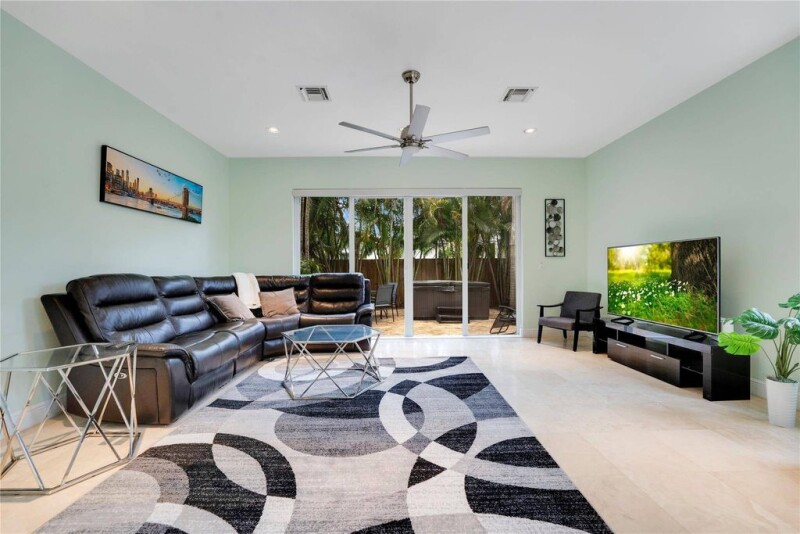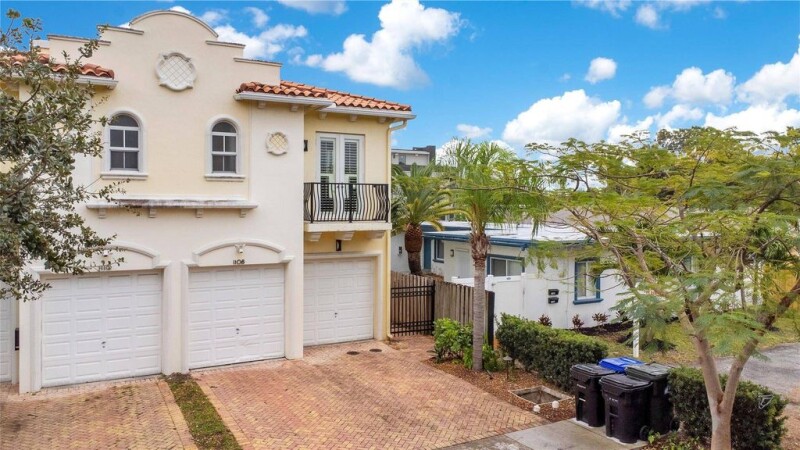 A true gem in the Lake Ridge community. This fee simple townhome features high ceilings with LED lighting on both levels. Natural light throughout. The home has been tastefully painted and gives the feel of a tropical paradise. The open kitchen features a breakfast nook, island, granite countertops and s/s appliances. Plenty of room for entertaining on the first floor. The cozy backyard features a hot tub. Hurricane impact windows and doors throughout the home. All 3 bedrooms are ensuites. All closets features built-ins. White plantation shutters are featured upstairs with Hunter Douglas shades downstairs. Flat roof 2022 Home is a mile to the beach and 1.5 miles to Las Olas shopping and dining. Minutes walk to Publix/Walgreens Plaza and Holiday Park. HOME IS BEING SOLD FURNISHED.