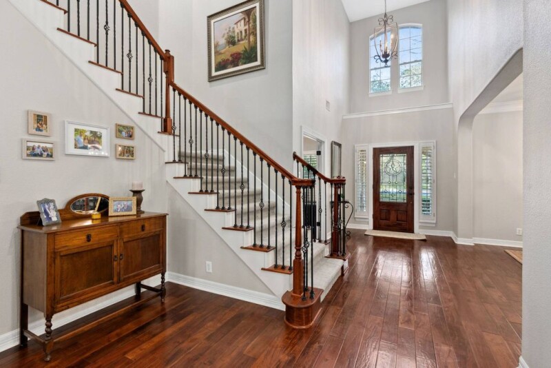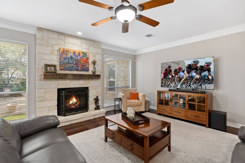Welcome to luxury living at its finest! Nestled in the prestigious community of Stonewall Ranch, this exquisite home offers an unrivaled blend of elegance, comfort, and convenience. Step through the grand entrance into a breathtaking foyer with soaring ceilings that set the tone for the rest of the home. Boasting 4 spacious bedrooms and 4 full bathrooms, this residence is designed to accommodate both relaxation and entertaining with ease. The open-concept floor plan seamlessly connects the living spaces, creating an inviting atmosphere for gatherings. A generously sized loft provides additional privacy and versatility, perfect for a home office, media room, or guest retreat. Outdoors, a heated pool awaits... perfect for unwinding on long Texas days. The three-car garage and extended driveway offer ample parking and storage space while a dedicated office space is perfect for today's busy lifestyle. 18 Stonewall Bend delivers an unmatched lifestyle with easy access to premier shopping, dining, and entertainment. Don't miss this opportunity to elevate your living experience. Schedule your private tour today!.