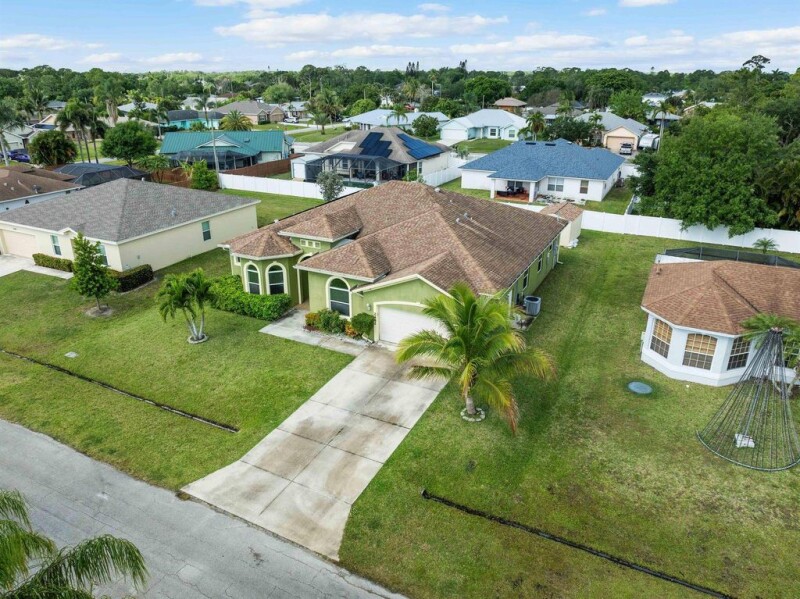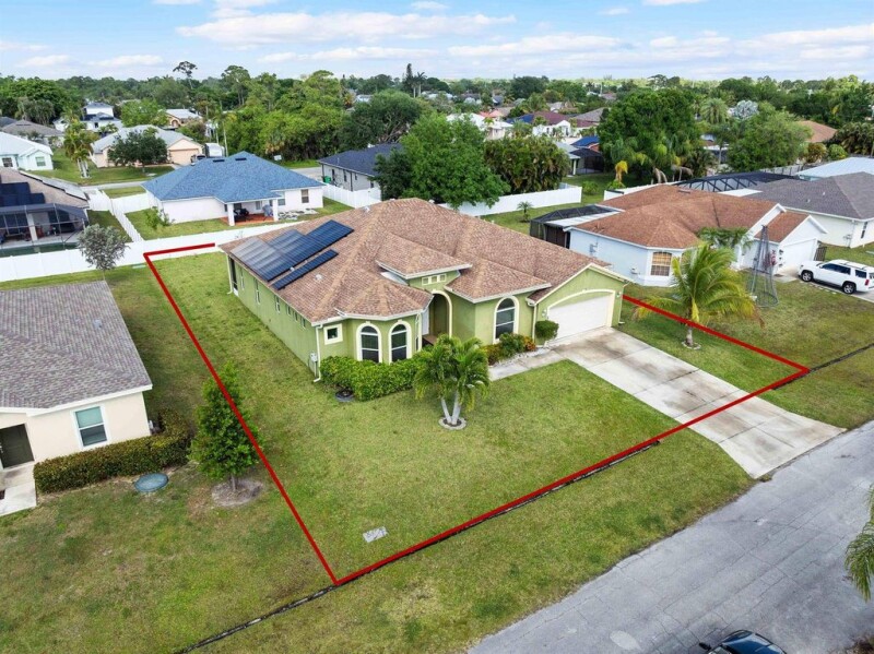 Now available! This stunning 4-bedroom, 3-bath executive home offers over 2,500 sq. ft. of living space in an established Port St. Lucie neighborhood. Featuring an open-concept design, the main living area includes a formal dining room, a den, and a large kitchen with a breakfast nook. A private office (or optional 5th bedroom) adds flexibility to the floor plan. Enjoy outdoor living on the screened lanai overlooking a private lot with a large storage shed. The 2+ car garage provides ample parking and storage. Additional highlights include solar energy for electric efficiency, public water and sewer, and a prime location just minutes from parks, boat launches, the Florida Turnpike, and I-95. Built just 10 years ago, this home combines modern convenience with a fantastic location.