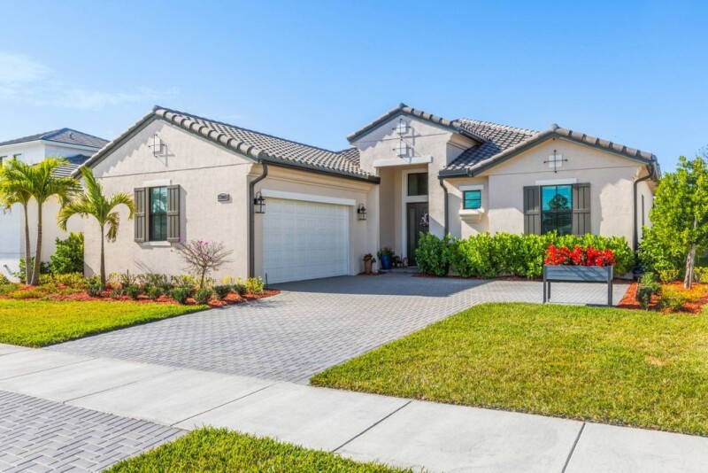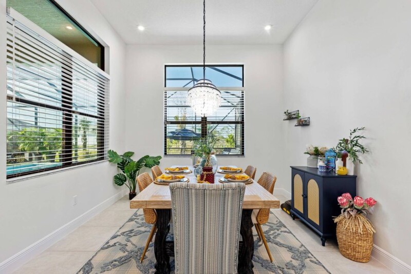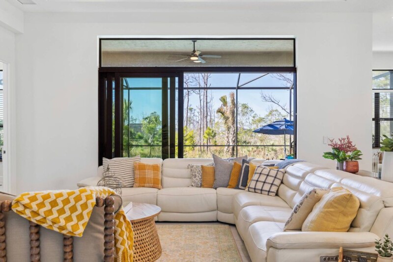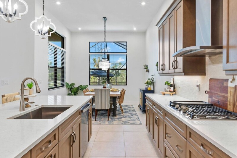 Step into luxury with this stunning 2023-built home, offering 2,586 square feet of open floor concept. This 3-bedroom, 3.5-bathroom home boasts en-suite bathrooms for each bedroom, ensuring privacy and comfort for all. The spacious Owner's Suite features tray ceilings, a spa-like oversized shower, dual quartz vanities, and a large walk-in closet. Soaring 12-foot ceilings in the kitchen and tray ceilings in the living room create an airy, sophisticated ambiance, while the custom pool and screen enclosure, crafted by the world-renowned A&G Concrete Pools, make this home an entertainer's dream. Enjoy tranquil preserve views from the rear of the home, offering a serene and private backdrop. Don't wait for the builder or permitting on a pool to be built. Setup a showing today!.