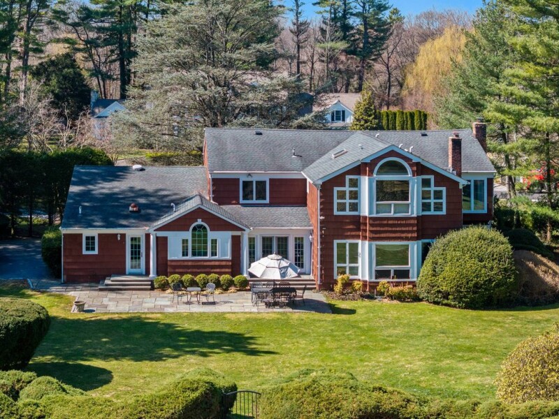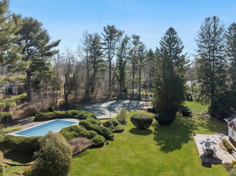 Welcome to this stately columned brick and shingle Colonial, nestled amidst lush landscaping that perfectly complements its timeless architectural elegance within the esteemed Village of Old Brookville. This home offers a harmonious blend of luxurious amenities, gracious living spaces, and thoughtful design elements, making it a true sanctuary for its next homeowner. As you approach the residence, the expansive circular stone driveway leads you to a grand double-door entry, where you are greeted by an open, spacious foyer adorned with a beautiful winding staircase. High-end interior elements include light-stained Oak hardwood floors, upholstered walls, plantation shutter doors, exquisite wall moldings and more. The main level of the home boasts large entertaining rooms, including a formal dining room, a sizable living room, an elegant powder room, a light-filled den with a brick fireplace, and a charming wet bar. The oversized French-country-inspired kitchen is a chef's dream, outfitted with commercial-grade appliances, coffered ceilings, and custom cabinetry. Ascending to the second level, you will find one full double-vanity bathroom and four spacious bedrooms, including the Primary Suite, which features soaring beamed ceilings and a private sitting area for ultimate relaxation. The en-suite primary bath is nothing short of a spa experience, featuring separate vanities, a deep jetted tub, and a large walk-in shower - the perfect sanctuary for unwinding after a long day. The walk-in closet is expansive, complemented by built-in shelving and a dedicated desk space for added convenience. There is a second, back stairway that leads to an unfinished attic space, offering potential for future expansion or ample storage. Additional details include a finished basement/playroom, a first-floor guest bedroom with a full bathroom, a laundry room with shelving, and an attached two-car garage. Step outside to a breathtaking outdoor paradise, where an in-ground pool and spa await, framed by a meticulously designed brick patio. Lush, mature landscaping makes this 2+ acre property extremely calming and private. There is also a spacious slate patio and grilling area, the perfect spot to host outdoors. A Har-Tru tennis court, along with a charming tennis chalet and deck, provides unparalleled opportunities for recreation and leisure. Located within the sought-after North Shore Central School District.