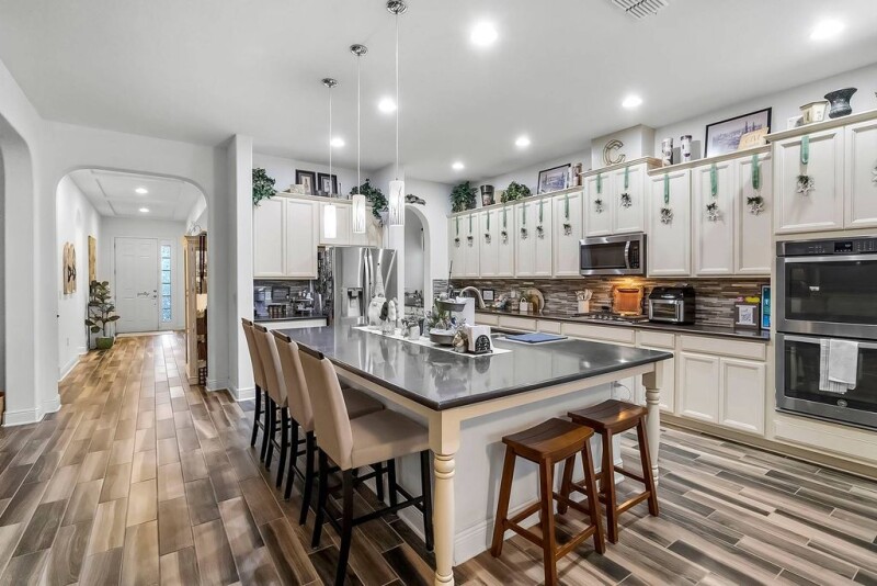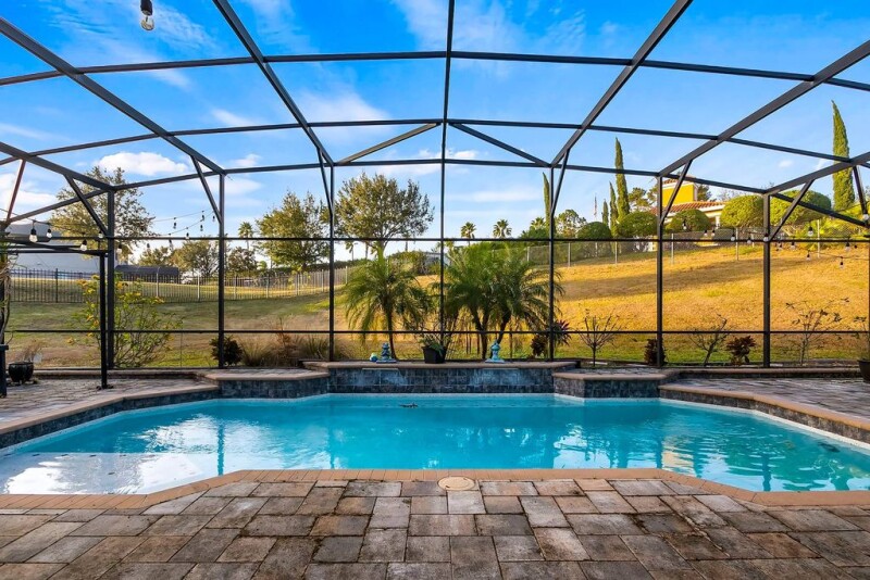 Stunning five-bedroom, 4.5-bath pool home with loft, bonus room and office in gated community. Welcome to this expansive and beautifully designed home, offering a blend of luxury and comfort. On a half-acre lot, this property features a huge pool and a spacious layout with five bedrooms, 4.5 baths, a loft, a bonus/media room, and a private office/den. The heart of this home is the gorgeous kitchen, which seamlessly opens to the large family room with surround sound speakers in the ceiling, ideal for entertaining. The kitchen boasts beautiful countertops, ample cabinetry, a gas cooktop, built-in double ovens and a microwave, all illuminated by pendant and recessed lighting. The formal dining room, just beyond the butler's pantry, offers plenty of space for family gatherings. Step outside through the two sets of sliding glass doors to the screened-in rear porch, where you can unwind or host barbecues by the large pool. With no rear neighbors, enjoy privacy and serene views. The primary bedroom suite is conveniently downstairs and features a huge walk-in closet and an expansive bath with dual vanities, a soaking tub and a separate shower. Upstairs, you'll find a loft ideal for a home office, study area or playroom. In addition, there's a bonus room ideal for a home theater or media room. The rear balcony overlooks the pool and offers the ideal space to enjoy morning coffee or evening drinks, while the front balcony offers stunning views of the rolling hills and even Disney fireworks in the distance. This home is in a gated community with a community pool, ideal for neighborhood events. Just minutes from shopping, restaurants, schools and major roadways, including easy access to the Orlando International Airport and the upcoming Olympus complex, this home offers the best of luxury and convenience. Don't miss the opportunity to view this incredible home. Please see the interior/drone video then make your appointment right away!.