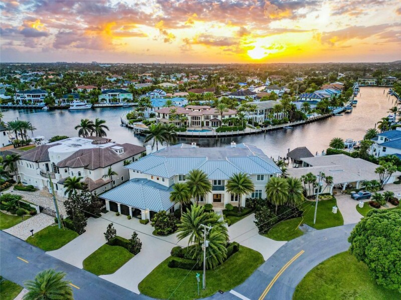 Exceptional coastal-inspired deepwater estate on 87'± of waterfront along wide Cap Knight Bayou, offering spell-binding water views. Crafted by Frankel Estate Homes and designed by Carlos Martin Architect, this residence sets a new standard with superior craftsmanship and materials. The 7-bedroom, 7.5-bath home spans 13,473± total square feet, showcasing wide water views from nearly every major room. The impressive double-island kitchen features custom cabinets and luxe appliances. Features include a 1,350-bottle wine cellar, full bar, elevator, office, 4-bay garage, generator, and more. Outdoor entertainment awaits with an expansive lanai, resort-style pool/patio, and covered summer kitchen. Ideal for avid boater, the full-service composite yacht dock is just minutes to Hillsboro Inlet.