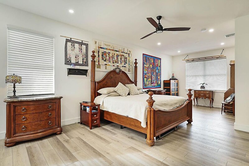 RARE FIND!! Discover this 2021-built hidden gem with stunning Intracoastal views! Elevated on 20-ton steel piers, this move-in-ready home offers 3 bedrooms, 3 baths, and 2,005 sq ft of modern living space. Enjoy an open-concept kitchen with a gas range and tankless water heater, plus luxury vinyl plank flooring and recessed lighting. Impact windows and doors provide peace of mind, while a private swim spa and pool deck offer relaxation. The 5-bay carport and angled design accommodate boat parking, with extra space for storage that is 10'x20' with A/C and electrical or a workspace. Close to the Intracoastal, shopping, dining, and the beach, with NO HOA--bring your RV, boat, or pickup!.