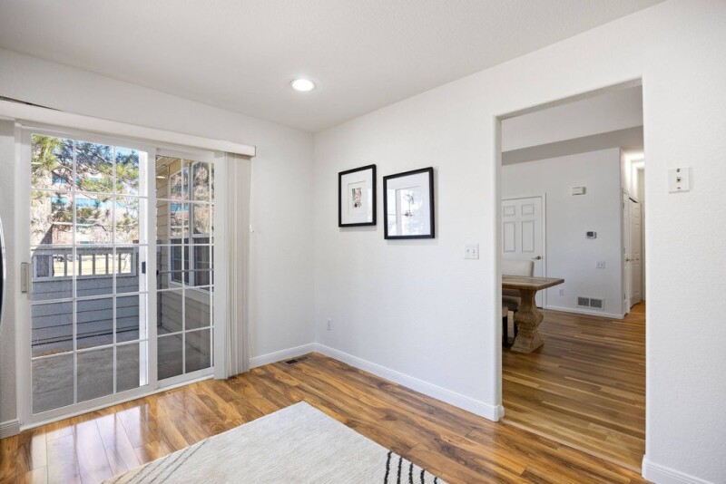 Lowry’s most sought after patio home floor plan! A rare main floor primary bedroom plan lives like a single family home without the hassle! In addition to the primary bedroom, there is a second main floor bedroom suite. A light and bright end unit with vaulted ceilings, a very spacious eat-in kitchen with private patio, spacious living/dining room with a gas fireplace full sized eating space. Upstairs is a large loft area - perfect for an office, gym or studio - with its own half bath. Brand new interior paint. Brand new oak flooring in the great room and primary bedroom. Main floor washer and dryer. Basement is wide open and ready to be finished or perfect for all the storage you could ever need! Well managed HOA includes the roof, landscaping and snow removal. About 1/2 mile from all the restaurants and shops in Lowry Town Center, Lowry Sports Complex, Wings Over the Rockies Air & Space Museum, Clark's Market, Target, gym, medical offices, and the extensive park systems right outside your front door!.
