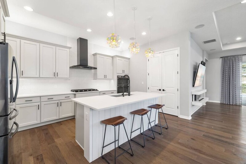 Welcome to 438 Whistler Glen, an exquisite single-story pool home in an exclusive gated enclave of just 30 residences. Built in 2021, this impeccably designed four-bedroom, 2.5-bath home offers a blend of luxury, privacy and modern convenience. On a sprawling .36-acre cul-de-sac lot with no rear neighbors, it provides a serene retreat adorned with high-end upgrades throughout. Step inside to an open-concept layout that exudes sophistication, featuring soaring tray ceilings, recessed LED lighting and rich hardwood flooring. The great room is a centerpiece, highlighted by a striking electric fireplace with customizable lighting and a built-in surround sound system for an immersive audio experience. With integrated speakers throughout the main living areas, all bedrooms and even the covered lanai, you can enjoy seamless sound indoors and out. Expansive triple-stackable sliding glass doors create a stunning connection between the great room and the screened lanai, enhancing the indoor-outdoor lifestyle. At heart of the home, the gourmet kitchen is a chef's dream. Designed with elegance and functionality in mind featuring upgraded soft-close cabinetry, quartz marble-look countertops and a striking tile backsplash. A spacious center island with a counter-height breakfast bar is illuminated by custom pendant lighting, while a dry bar with a beverage refrigerator adds a luxurious touch. Top-of-the-line smart Samsung black stainless-steel appliances, including a 36-inch gas cooktop with vented hood, built-in convection wall oven and microwave, and a whisper-quiet dishwasher, complete this beautifully appointed space. The primary suite is a private sanctuary, offering an 11-foot tray ceiling, recessed lighting, plantation shutters and two custom walk-in closets with built-in cabinetry. The spa-like en-suite bath is a masterpiece, featuring a dual quartz vanity and a luxurious double walk-in shower with frameless glass. Each additional bedroom is generously sized, with 10-foot ceilings, ceiling fans, plantation shutters and recessed ceiling speakers with individual volume controls. The laundry room is functional and elegant, featuring custom-built wood cabinetry with soft-close doors, quartz countertops, a deep sink with a pull-down faucet and a white subway tile backsplash. Outdoor living is equally impressive. The covered and screened lanai extends to an oversized paver pool deck, showcasing a heated saltwater pool with a sun shelf, color changing LED lighting, a cascading waterfall and a bubbling fountain. Entertain effortlessly in the custom summer kitchen, complete with marine-grade cabinetry, granite countertops, a gas barbecue grill, sink and a beverage refrigerator. This smart home is outfitted with cutting-edge technology and includes exterior Ring security cameras, smart keyless deadbolts, smart Z-wave dimmable light switches, Ring smart landscape lighting, a Wi-Fi-enabled irrigation system and more. You'll be absolutely amazed at how smart this home is and what it can do. Additional highlights include a two-car garage with an epoxy-coated floor, an EV charging outlet, ample built-in storage, a whole-house water softener system and a tankless on-demand gas water heater. With HOA-covered landscaping, lawn care, irrigation, cable TV and high-speed internet, this maintenance-free haven offers a luxurious yet effortless lifestyle. Don't miss your chance to own this like-new exquisite retreat!.