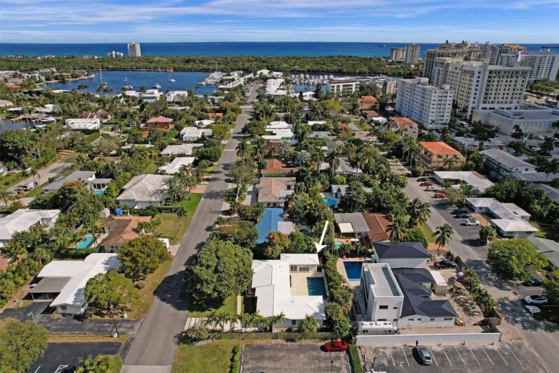 Fantastic Mid Centruy design in Coral Ridge with 4BR+ den/office and 3.5 baths. This home was rebuilt with new wiring and plumbing, all Hurricane Impact doors and windows, 2 new AC units in 2024. Tile roof 2017. Beautiful Kitchen and baths. All smooth drywall, tons of natural light and stunning Terrazzo. Awesome sq footage with almost 2900 sq feet "under air". Awesome street East of Bayview Drive-close to the park, Bayview elementary and nearby shopping plus a quick walk to the beach. Huge pool and deck. Recent "Guest House" addition offers 4th bedroom with ensuite, full kitchen and washer/dryer with private entrance and green space- ideal for home office, multi generational living or just a fun pool house. Great master suite with 2 walk in closets and awesome bath.