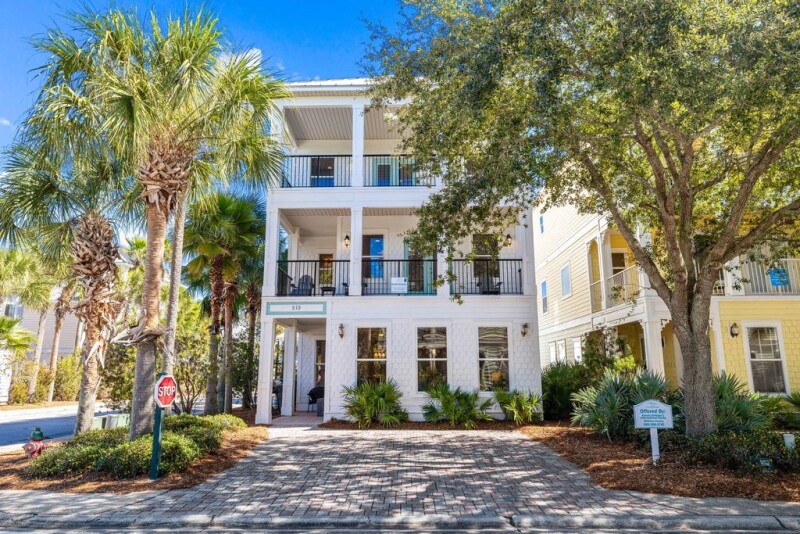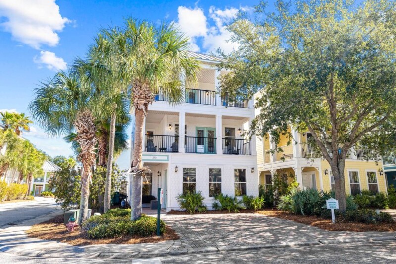 Three floors of luxury living await at this Caribbean-inspired beach house in the Village of Crystal Beach. Paved parking, views of the nearby pool and no neighbors to the left give this vacation home an enviable amount of privacy. Wood features high in this well-maintained home that shows like new with updated furniture, fresh paint, new rugs and new smart TVs in every room. The updates continue in the open-concept kitchen which boasts all new stainless steel appliances including the stove, microwave, dishwasher and refrigerator. A new washer and dryer are tucked away in the laundry. Crown molding adds a touch of elegance to the spacious first-floor sitting room, which has ample space for social gatherings around the TV. The adjoining kitchen is well laid out with wood cabinets and black granite countertops extending onto the counter for breakfast and casual mealtimes. Beyond the kitchen, the formal dining room is perfect for leisurely dining and entertaining. Two master bedrooms on the second floor are sure to delight with swanky bathrooms boasting whirlpool tubs, double vanities and tiled showers. Three additional guest beds and two more bathrooms are located on the first and third floors. Well-appointed wet bars with fridges and microwaves are thoughtfully located on both the second and third floor, allowing family and friends to help themselves to drinks and snacks throughout the day. Covered porches on every level provide ample space to spread out and find a quiet place to read or chat. The community has an outstanding array of amenities including a lagoon pool, waterfalls and an island hot tub all just a short walk from the door. Multiple grills are available for partying in the gazebo area and there’s a seasonal shuttle service for easy access to the white sandy beach.