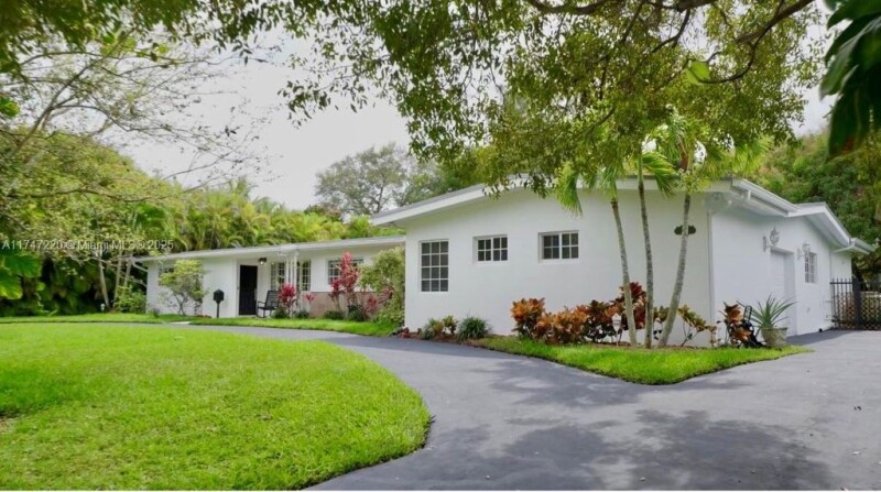This rambling split-plan Pinecrest retreat is set on a quiet street close to Palmetto Elementary, Middle & Senior High Schools. Big spaces w/sloped, airy ceilings wind thru a formal living room, pool-view formal dining room, a family wing that encompasses a giant kitchen w/rare imperial blue granite, a family room & family dining room, opening to a covered terrace overlooking the pool w/mosaic inlays. Beyond unfolds a lush fenced yard filled w/fruit trees and an immense palm privacy screen. Patio cook-outs. Garden parties. Gourmet gatherings. Birthday sleepovers. Get creative w/the good times you’ll host to perfection in this updated home. Amenity highlights incl. closet built-ins, wood floors, secondary mini-kitchen, 2 laundries, new appliances, generator hook-up, and a circular drive.