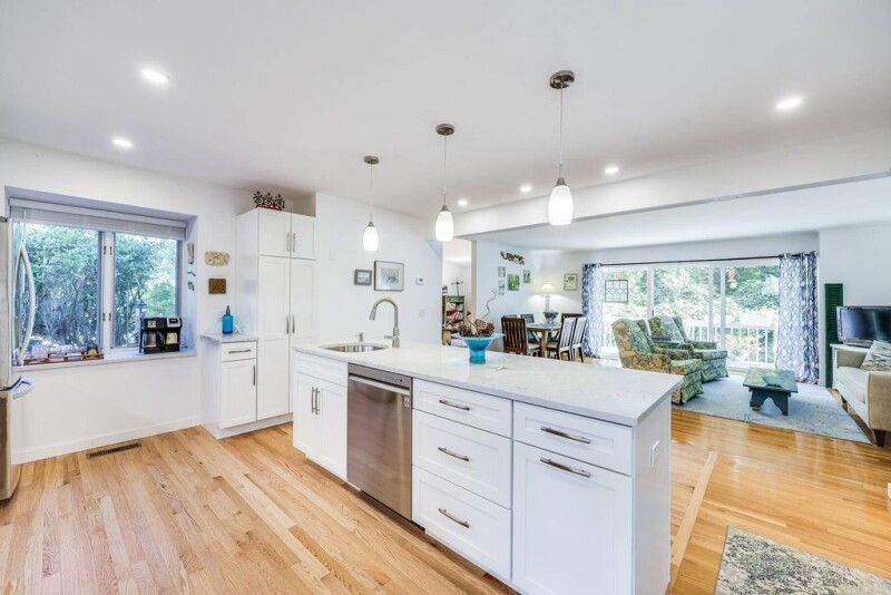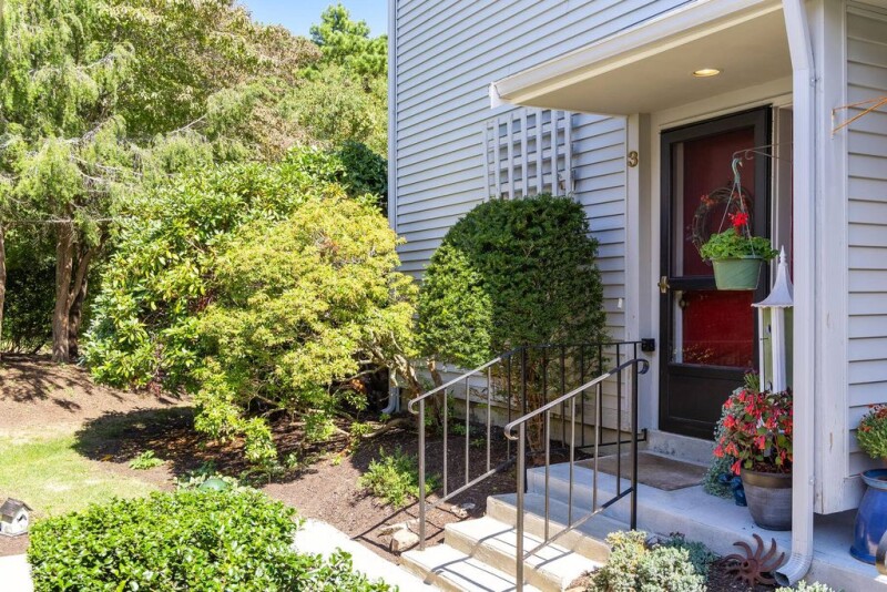 Tucked away on the edge of downtown Sandwich, The Mews offers a charming community just a short walk from the library, shops, restaurants, and the iconic Sandwich Boardwalk. This home offers a new roof, furnace, kitchen, sliders, finished lower level, totaling 2282 square feet. This three level condo lives like a single-family home with its large grassy yard and surrounding woods. The beautifully renovated open kitchen boasts white cabinets, stone countertops, and stainless-steel appliances, blending style with modern convenience. It flows effortlessly into the spacious living room, where hardwood floors and a triple slider open to a private deck—ideal for outdoor enjoyment. The family room features a cathedral ceiling, hardwood floors, and deck access, with the flexibility to serve as a first-floor bedroom with an adjoining full bath and oversized closet. Upstairs, two generous bedrooms include a primary suite overlooking the private backyard with two closets. Both bedrooms offer hardwood floors and share a full bath. The lower-level fully-renovated walkout provides 640 sq ft of fantastic additional space, perfect for a hobbyist or for accommodating overflow guests. The backyard offers exceptional privacy with a serene wooded backdrop. A carport with storage is conveniently located just outside the front door, with additional guest parking available. Enjoy the best of Cape Cod with low-maintenance living and the convenience of walking to exceptional local amenities. A rare find in The Mews.