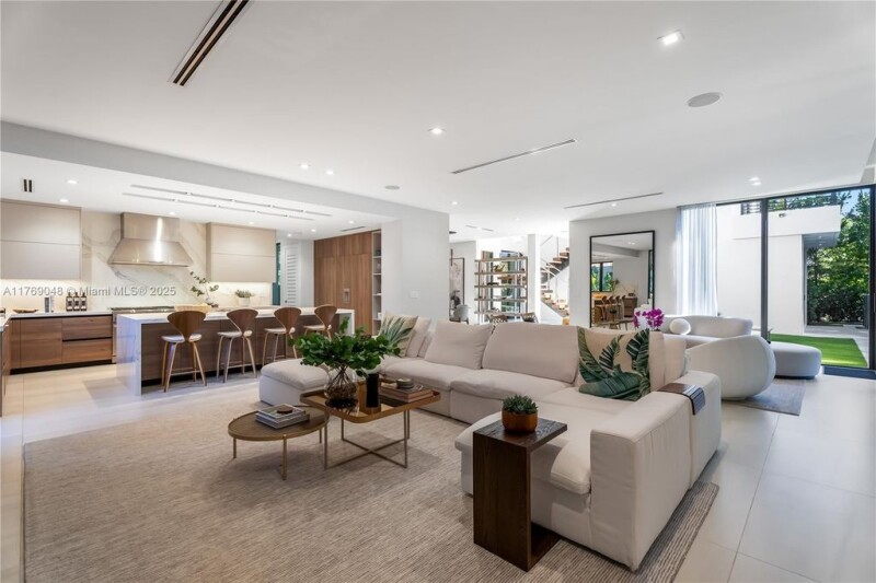This stunning 2023 home blends modern design with exceptional craftsmanship. Offering 4,866 SF of living space (6,375 SF total) on a 13,500 SF lot, it features 6 beds & 7 baths, meticulously finished with custom details such as trimless lighting & AC ducts and a cozy living room fireplace. A grand double-height entrance with a pivot door leads to a bright, open floor plan. The master suite, on the ground floor, includes a luxurious bathroom with his-and-hers vanities, a freestanding tub, generous walk-in closets, and a private balcony. Additional features include porcelain floors, laundry room. The lush, private garden features a heated pool, covered terrace, and a fully-equipped summer kitchen. Ideally located in South Miami close to Miami’s best private schools & business centers.