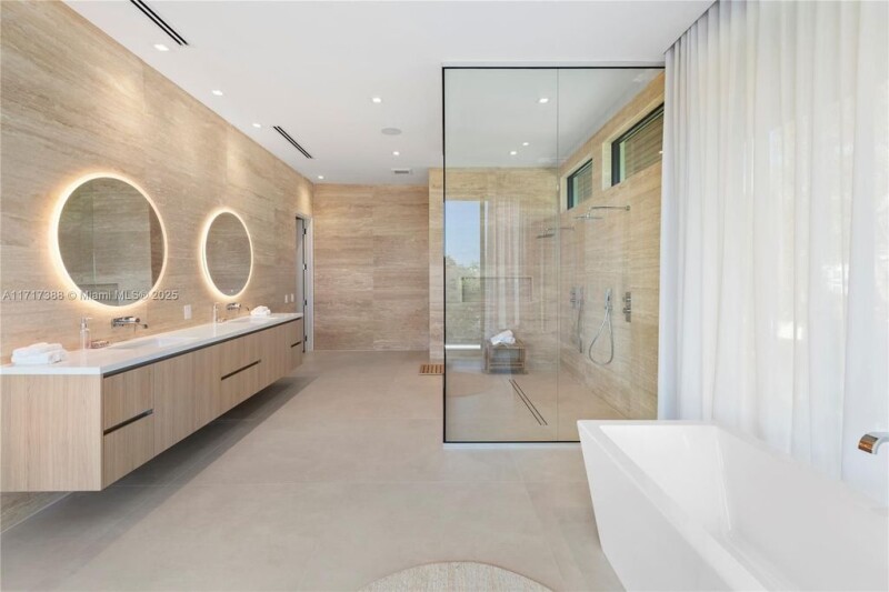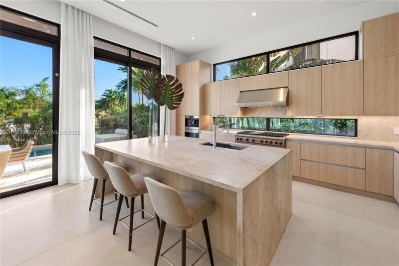 Sophisticated contemporary waterfront in exclusive and guard-gated Keystone Point! This brand-new, 6,530-SF home has a large dock with 75-FT of protected waterfrontage - ideal for boaters! Inside, expansive open concept living areas with soaring 12-FT ceilings, gourmet kitchen with marble counters and wine fridge, custom wood-paneled walls, modern floating staircase, and wall-to-wall-glass windows allowing natural sunlight and backyard views! Upstairs, family room, beautiful oak floors, and extravagant master suite with a wet bar, 2 walk-in closets, luxe travertine bath, and large terrace with sparkling water views. Backyard features summer kitchen, pool, covered dining/lounging areas, and privacy landscape! Complete with 2-car garage and located minutes to Bal Harbour Shops.