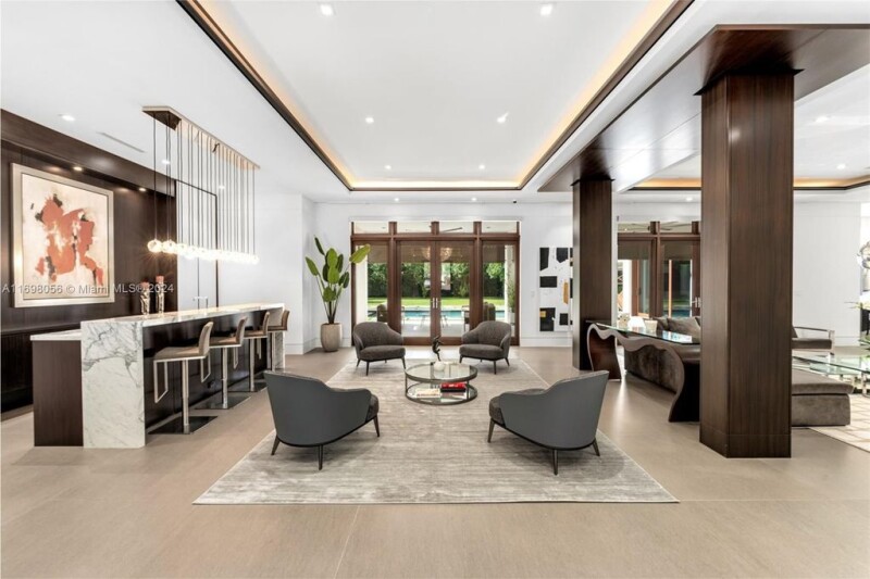Welcome to this 2-story retreat, nestled in one of Pinecrest's most sought-after locations. The residence boasts impact windows throughout, offering views of the sprawling 37,990 SqFt lot. This home features 8 BD, 9.5 BA, a 3-car garage, generous living spaces, service quarters, and versatile rooms ideal for a gym or home theater. The primary ste located on the ground floor is a private haven with a sitting area, 2 walk-in closets, a spa-like tropical bathroom, and serene views of the sparkling pool. The home’s living spaces are enhanced by a wine display and bar, soaring volume ceilings, designer lighting, and spacious terraces. Step outside to enjoy the brand-new outdoor kitchen, set in a lush backyard oasis surrounded by mature mango trees.