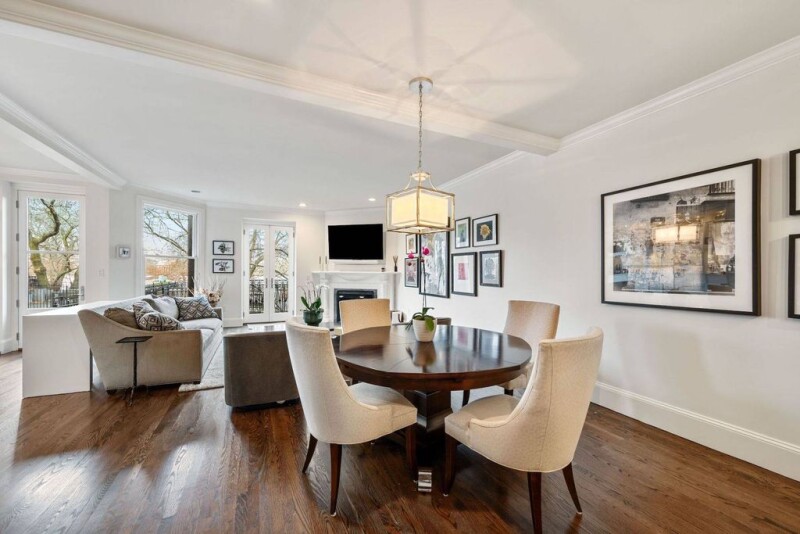 This beautifully renovated 3-bed, 3-bath parlor duplex offers stunning Charles River views and an open layout spanning two levels. Newly installed hardwood floors enhance the spacious living/dining area, which features a fireplace and custom built-ins. The custom-designed kitchen with high-end Viking and SubZero appliances flows seamlessly into a sunlit family room with river views. A large private deck extends from the living area, and a third bedroom with a full bath completes the main level. Downstairs, the expansive primary suite boasts radiant floors, a decorative fireplace, a walk-in closet, and a spa-like bath with access to a serene bluestone patio. A guest bedroom, full bath, and laundry complete this level. Two tandem garage parking spaces included. Ideally located in the heart of Back Bay, just steps from premier shopping, dining, and the Esplanade.