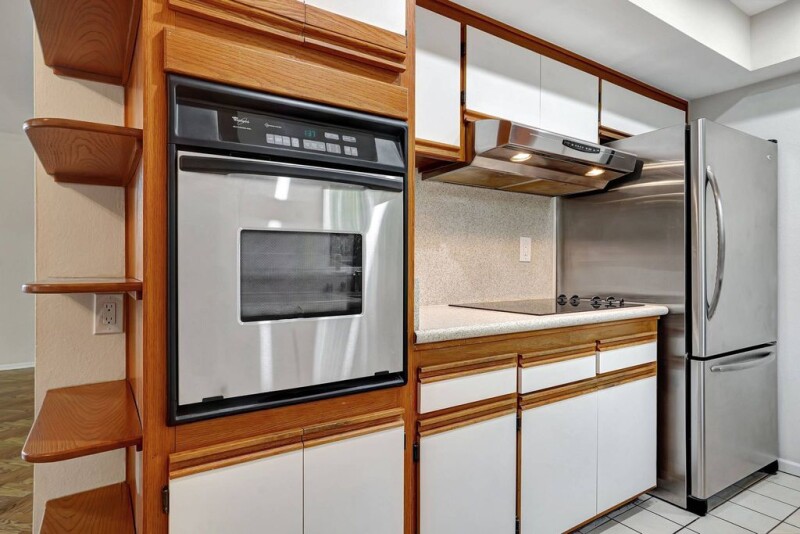 Top Floor condo located just south of the iconic Sunset Strip. Three bedrooms, two bathrooms, front end unit penthouse with a spacious open floor plan allowing plenty of natural light. Great entertaining living room and dining area with a focal fireplace when you enter the room and you look out to the balcony with treetops that cover the unit with some privacy. The front window and door slider that are double pane are floor to ceiling windows. The kitchen off the dining area has stainless steel appliances and a window with natural light. End of the hallway is the primary bedroom and in-suite bathroom, ample walk in closet, and window in bedroom for natural light. Two other bedrooms located off the hallway and a hallway bathroom. New double pane windows throughout the condo with blinds that are located on two sides of this end unit condo. New vinyl flooring in two bedrooms. Harwood flooring in the open living space and front bedroom. Newly painted throughout. The condo's community amenities include a fitness/exercise room, pool, controlled access to the building for security, gated parking with two spots, one EV community charging spot, and elevator. This prime location is a 1/2 block from Trader Joe's and CVS on Sunset Blvd. There is renowned dining, theater, shopping destinations and entertainment on the Sunset Strip. Make this your own oasis in the heart of the city!.