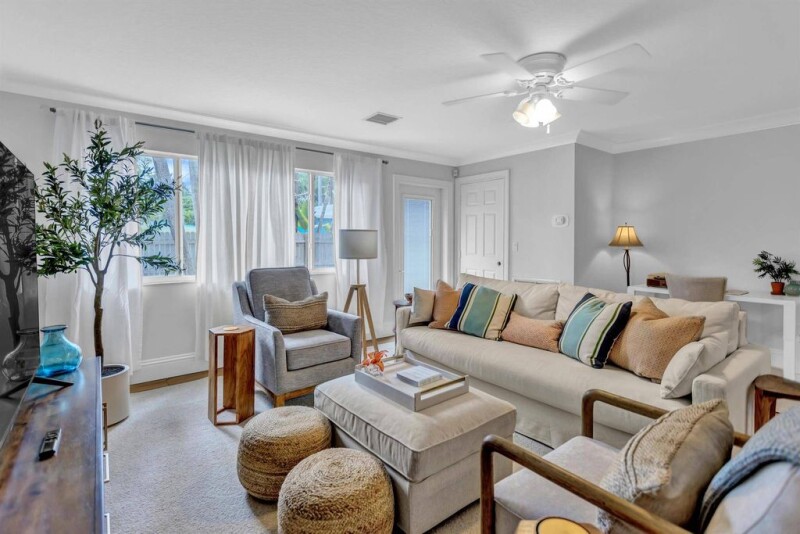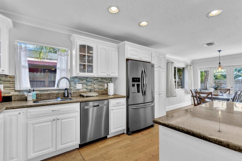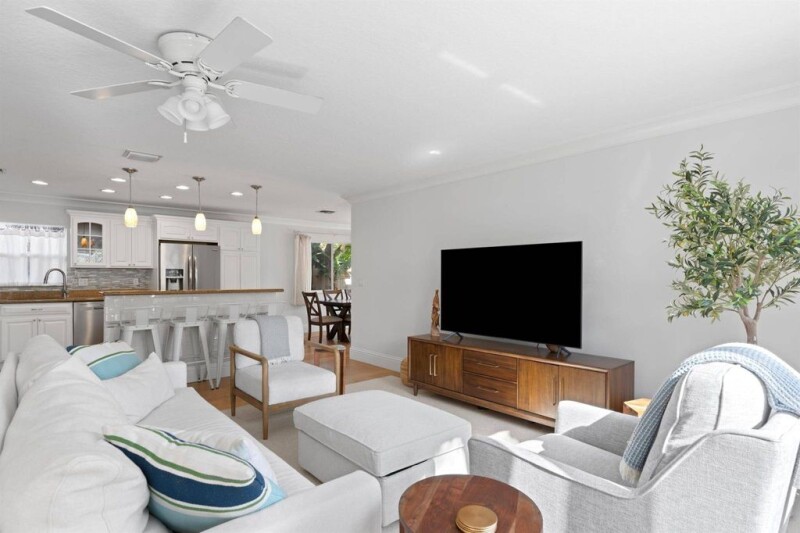 Discover Coastal Serenity in ''The Pocket,'' Palm Beach County's Hidden Gem. Nestled between the prestigious communities of Ocean Ridge and Gulf Stream, lies Palm Beach County's Best kept secret known as ''The Pocket,'' a coveted coastal enclave where the laid-back charm of Key West meets the convenience of world famous shops and dining nearby. Just 60 seconds. That's all that separates you from the ocean and your front door. This beach chic 4-bedroom, 3-bathroom retreat offers a seamless blend of comfort and style. Step inside to discover a bright, open floor plan adorned with stunning new European White Oak tongue-in-groove flooring, creating an inviting ambiance throughout.