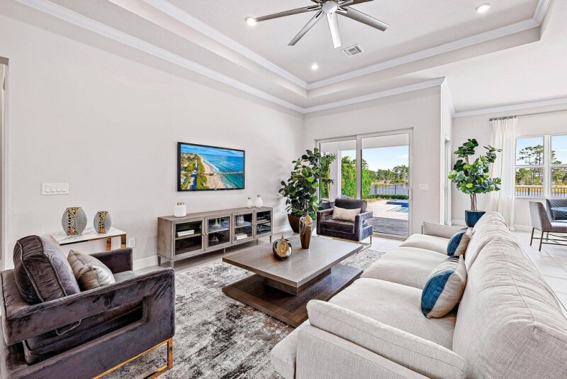 Welcome to Banyan Bay, one of Stuart's premier gated communities! This stunning 3-bed, 2-bath plus a dedicated office and a 3-car garage home is nestled in the exclusive ESTATE section on an oversized lot, offering the perfect blend of modern design and coastal charm. Built by Ryan Homes in 2021, this meticulously maintained residence spans 2,668 square feet of open-concept living space, featuring high 10' ceilings, abundant natural light, and elegant finishes throughout.The gourmet kitchen is a chef's dream, complete with white shaker style cabinetry, quartz countertops, farmhouse sink, large kitchen island, pendant lights, double oven and walk-in pantry.