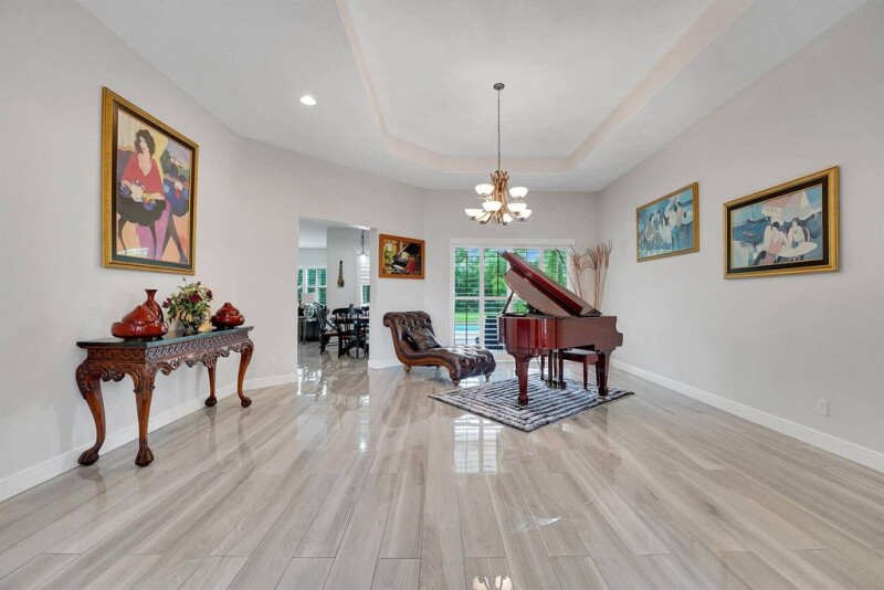 Tres Belle in Stuart offers this STUNNING 5 br,,plus den, 4 bath Pool home nestled on a 1/2 acre Corner lot! The stately entrance welcomes you to the open formal living room, dining room and den. The gourmet kitchen features natural GAS cooking, 42'' cabinets, stainless steel appliances, 2 center Islands with quartz countertops plus seating area, open to the family room and sliders to the pool/patio area. The Primary Bedroom suite is on the 1st floor with custom walk in closets, separate tub and shower plus sitting area and sliders to the covered patio, pool and spa perfect for a nighttime dip. Also on the 1st floor a guest suite and cabana bath. The gorgeous light gray tile floors are also upstairs with 3 bedrooms and 2 baths (one jack and jill bath and one on-suite bath).
