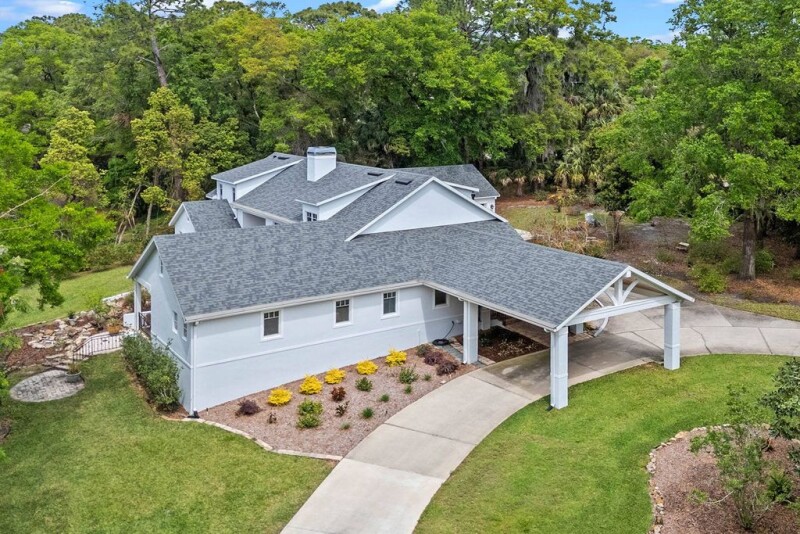 Elegant garden estate in Elysium, Mount Dora. Masterfully constructed by Keith Fields, this refined four-bedroom, four-bath residence spans 3,655 square feet and is gracefully sited on more than one acre in the esteemed community of Elysium. Designed with an emphasis on privacy, flow and connection to nature, the home invites effortless living with curated details throughout. The first-floor primary suite offers a tranquil retreat, featuring wood flooring, dual vanities, a walk-in shower and French doors that open to a covered porch overlooking sculpted gardens and twin waterfalls. Soaring ceilings and abundant Anderson windows fill the open living space with natural light, framing the gas fireplace and seamlessly linking the interior to its verdant surroundings. The kitchen is thoughtfully appointed with new Thermador appliances, including an induction cooktop, and flows into the dinette and formal dining area, ideal for everyday living and elevated entertaining. A versatile office or den, guest bedroom and full guest bath complete the main level. Upstairs, two additional bedrooms feature private en-suite baths and are complemented by a spacious loft and reading nook. A detached three-car garage enhances the estate's functionality, while the lush grounds offer a rare sense of serenity. In Mount Dora, celebrated for its lakeside charm, artistic energy and boutique culture, this residence is a singular opportunity to own a timeless garden estate in one of Central Florida's desirable enclaves. Schedule your private tour today.